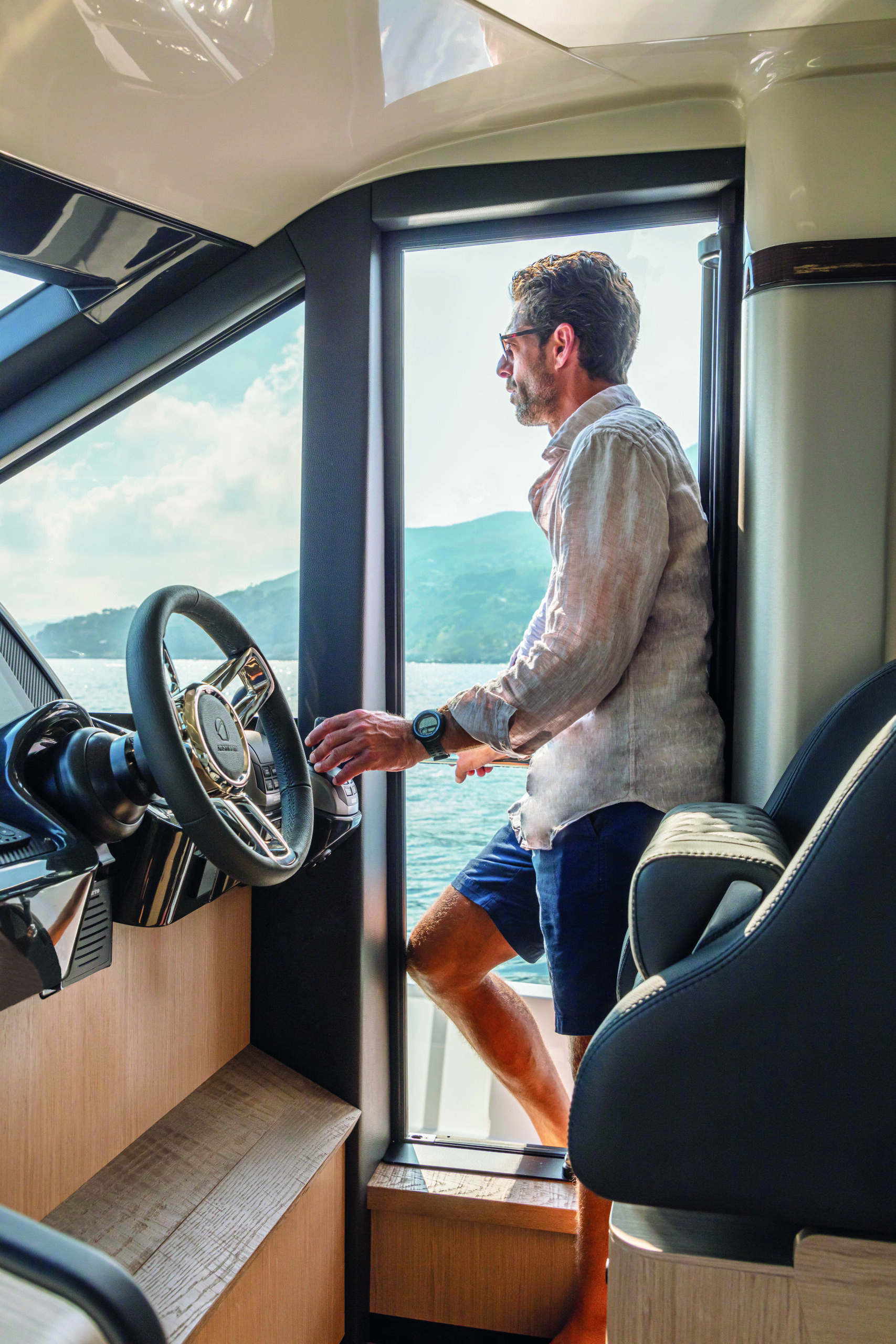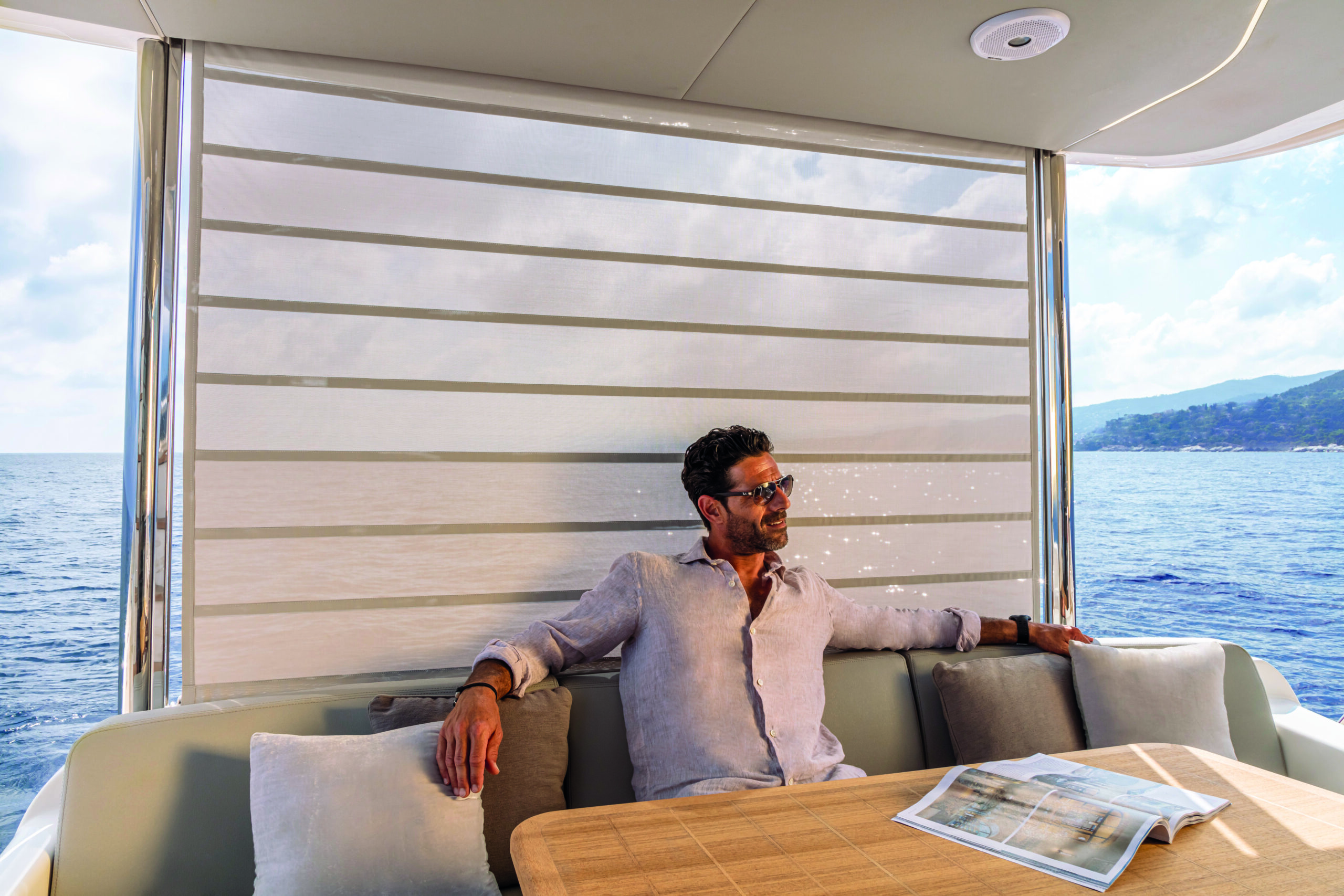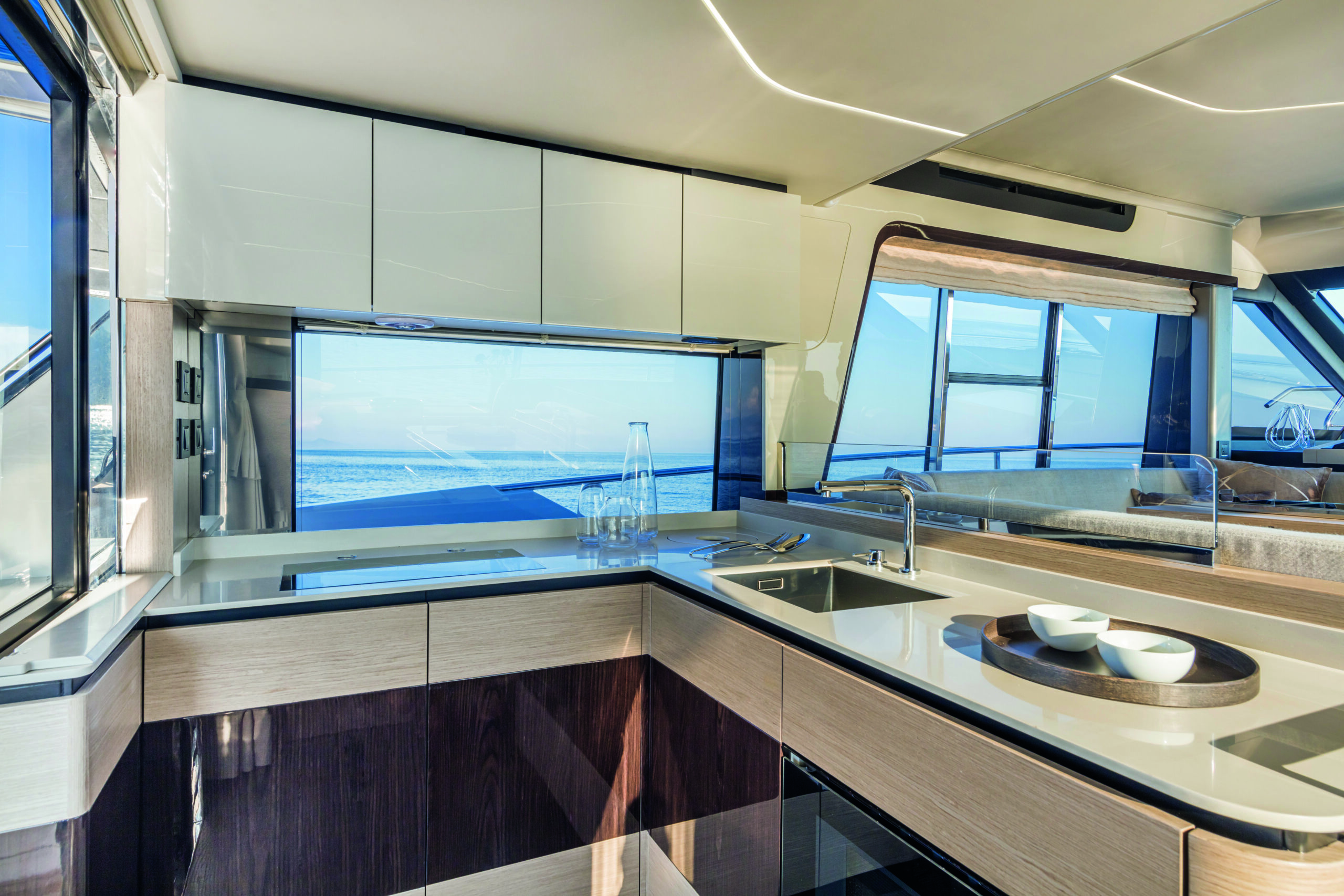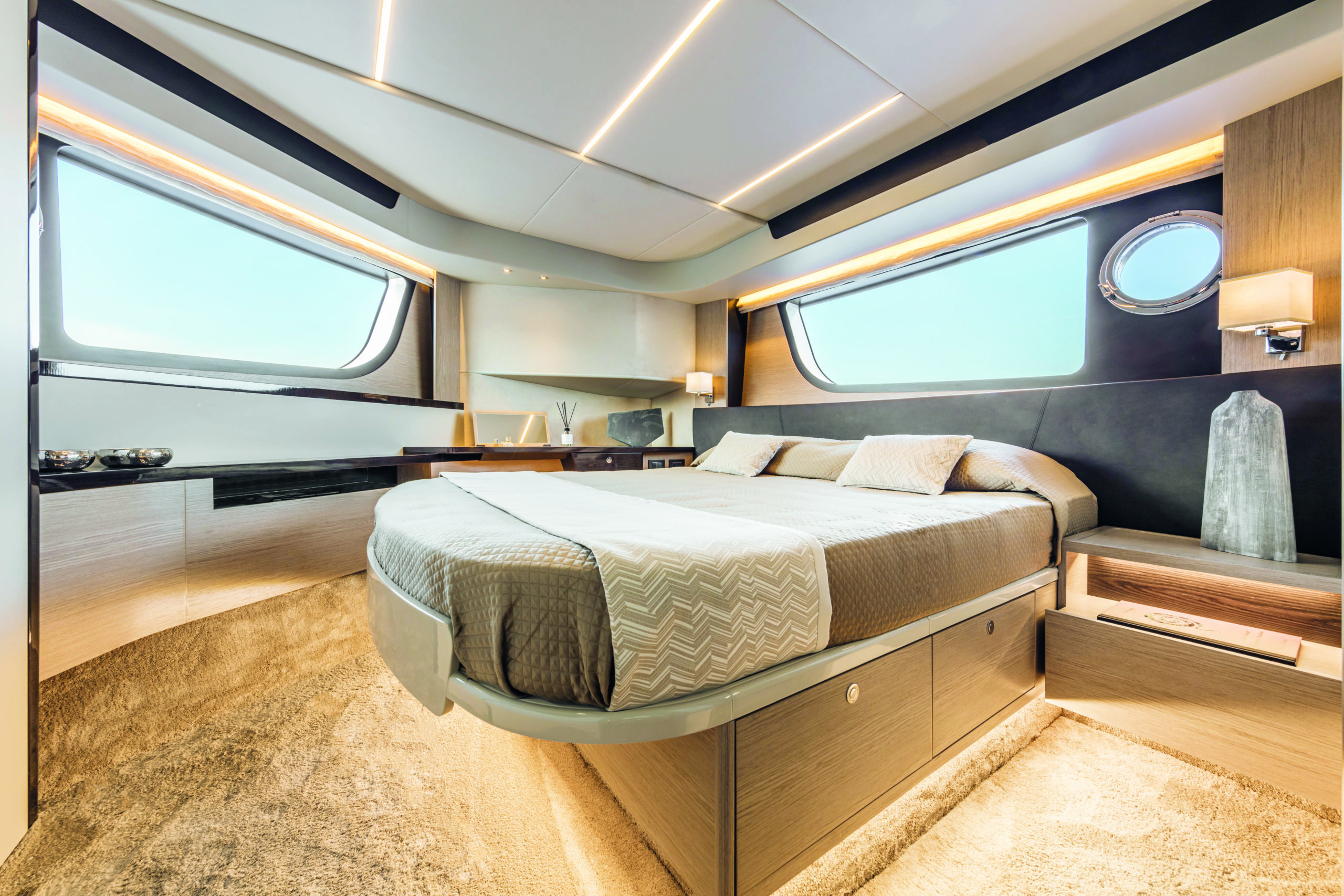 Step inside the Absolute 47 Flybridge, and you’ll be greeted by a meticulously crafted interior that exudes elegance and comfort. The main deck features an open-plan layout, seamlessly connecting the saloon, dining area, and helm station. High-quality materials, fine finishes, and contemporary decor create an inviting and sophisticated atmosphere. The salon is designed for relaxation, with plush seating and large windows that offer unobstructed views of the surroundings.
