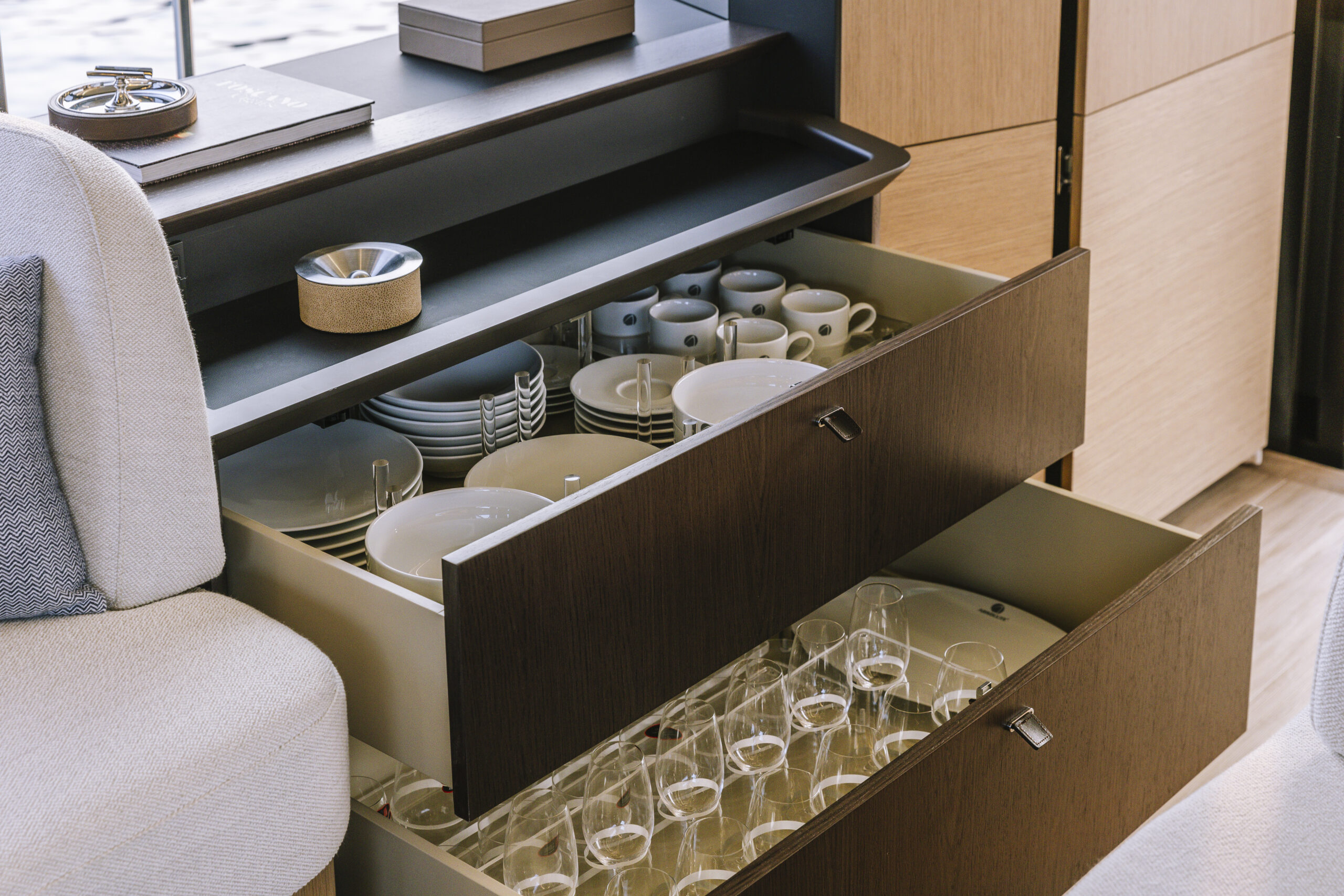 Every detail of the Absolute 52 Flybridge is designed to elevate your cruising experience. You’ll feel the difference in the generous headroom, minimal use of steps, expansive glazing, and thoughtful design touches that enhance life on board for both guests and crew.