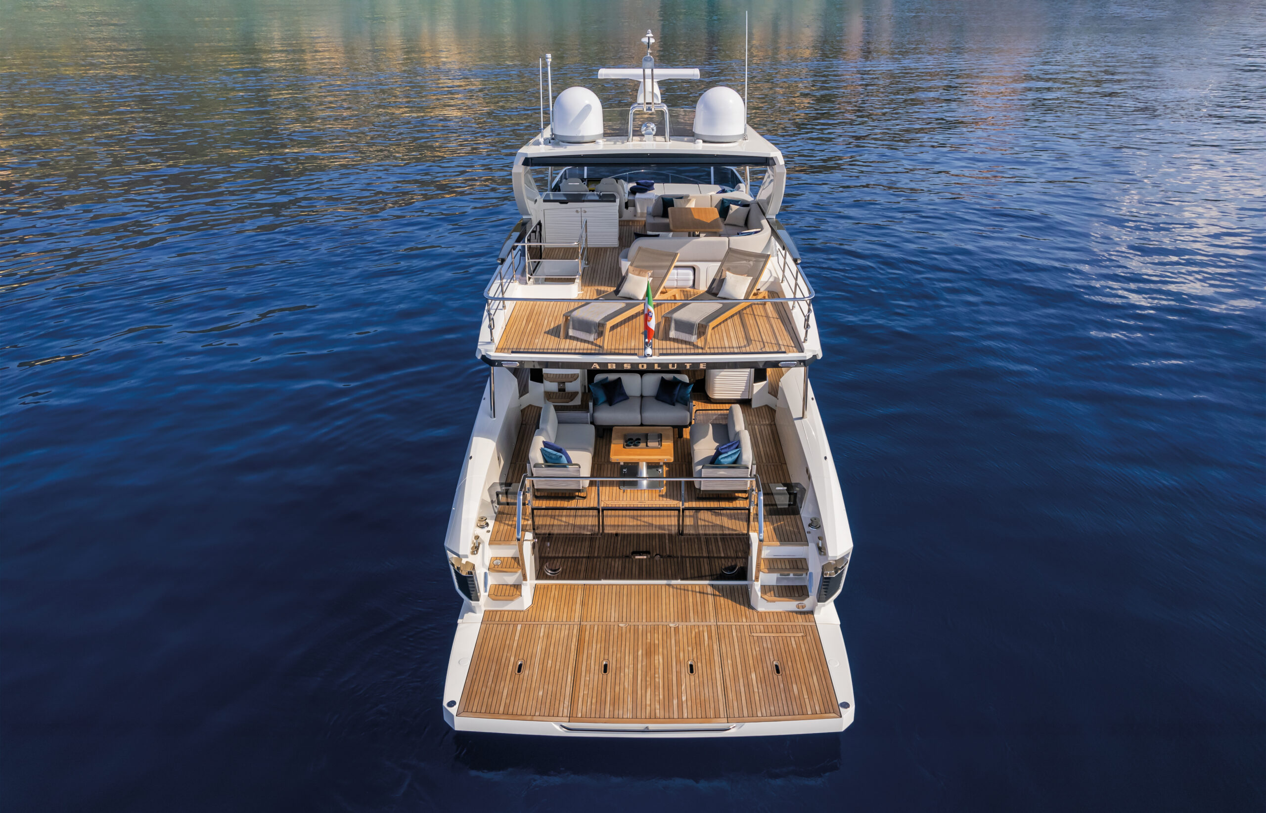 The Absolute 60 Flybridge is not your average yacht – it’s a game-changer in the world of luxury yachts. With sleek glazed parapets balustrades, this beauty offers stunning, uninterrupted views from the flybridge and aft cockpit. The cockpit design is fully customizable, so you can deck it out to your heart’s desire. Access to the spacious swim platform is a breeze with two side stairwells, making it easy to dive right into the water for endless fun. And let’s not forget the crew cabin, conveniently located next to the swim platform for seamless movement.