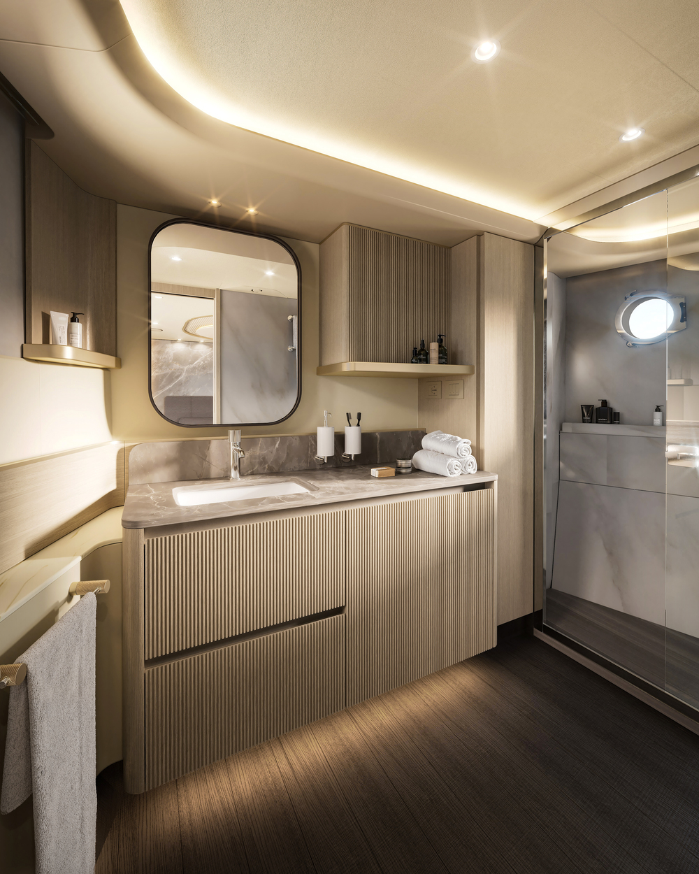 The owner’s suite offers panoramic views and a spacious ensuite, while the VIP stateroom and guest cabins ensure everyone on board enjoys first-class comfort. Dedicated crew quarters provide discreet service, making every trip effortless.