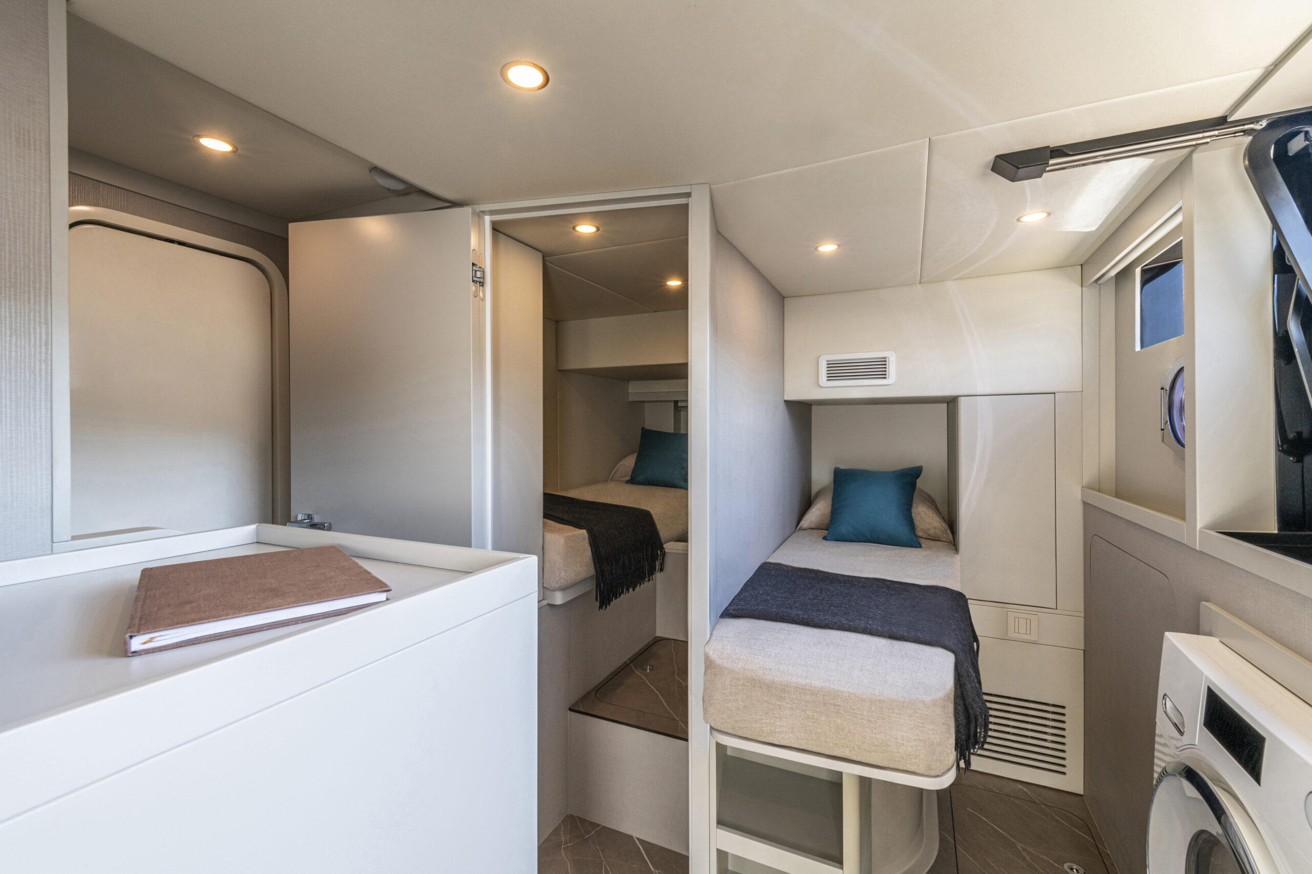 To ensure maximum privacy, the crew accommodations have been separated and well-equipped, featuring two beds and a private kitchen.