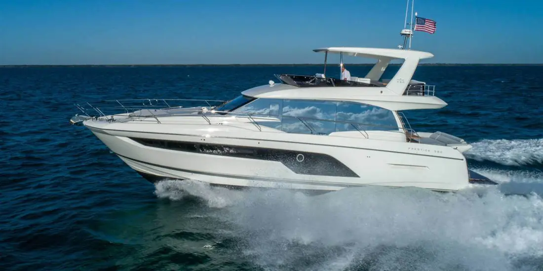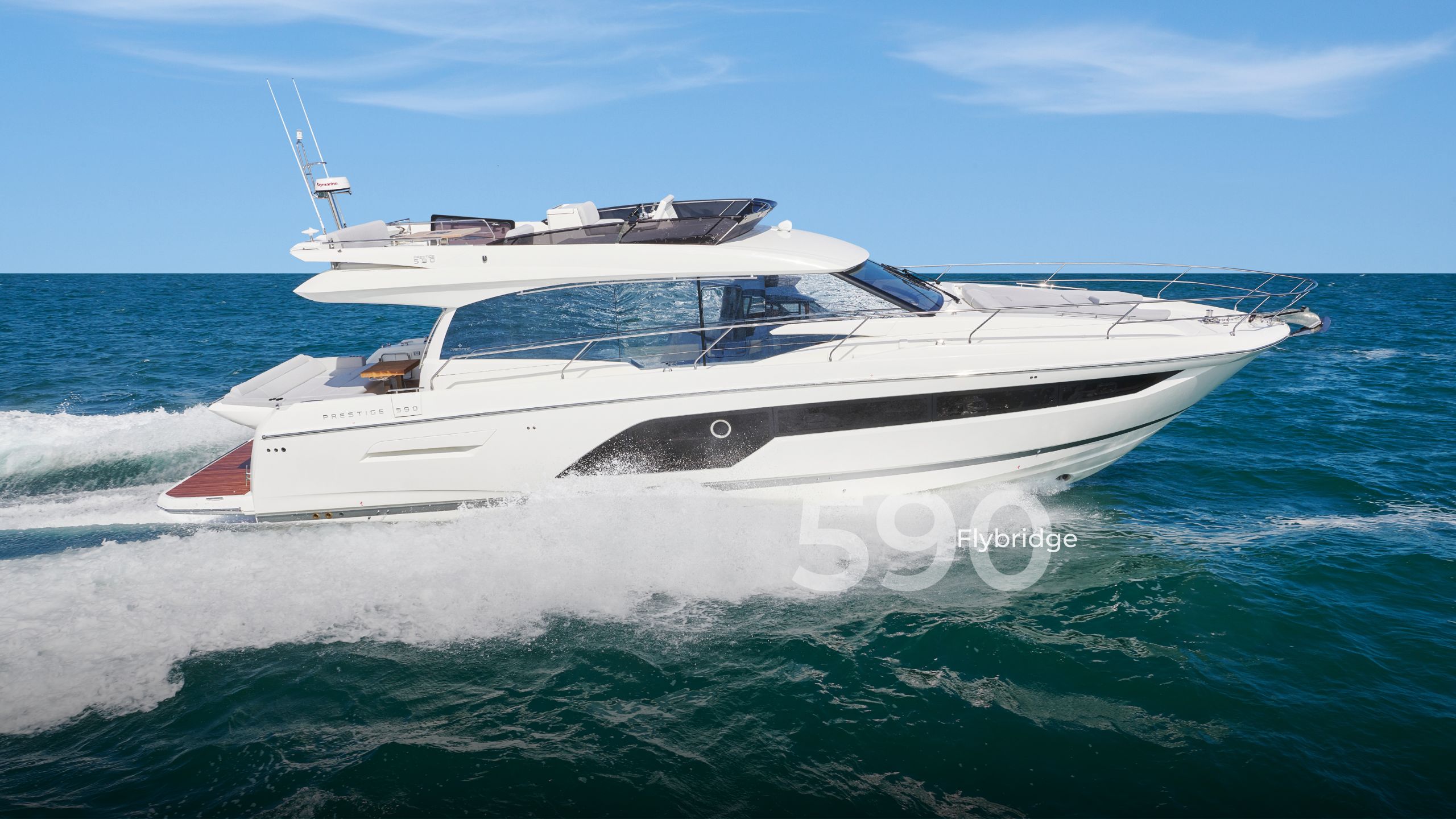 The Prestige 590 exudes sleek lines and exceptional ergonomics, making it the epitome of luxury. Every detail, from the spacious flybridge to the stylish radar arch, has been meticulously crafted for both form and function.