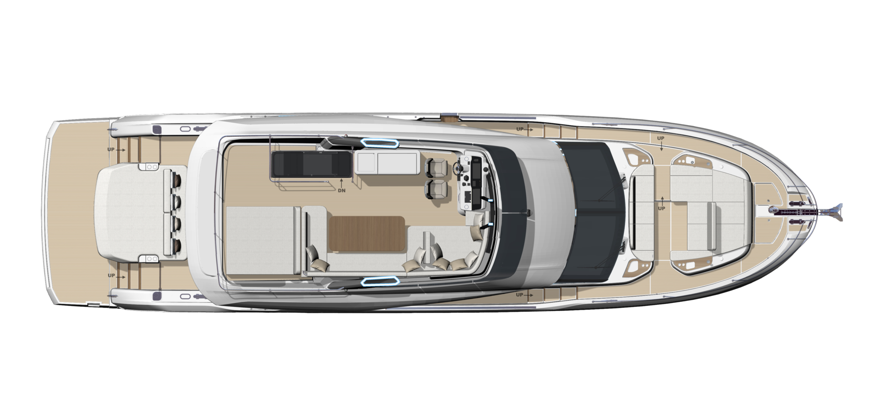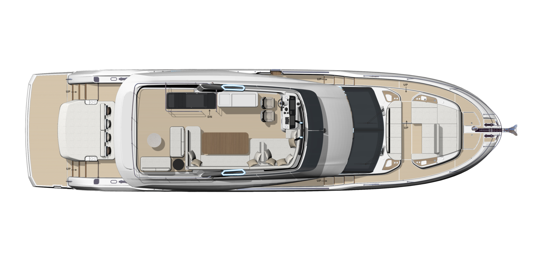 The Prestige F6.7 is for those who want a yacht that feels easy from day one. It favors comfort and open living over flash, with a clean design that won’t feel dated over time.