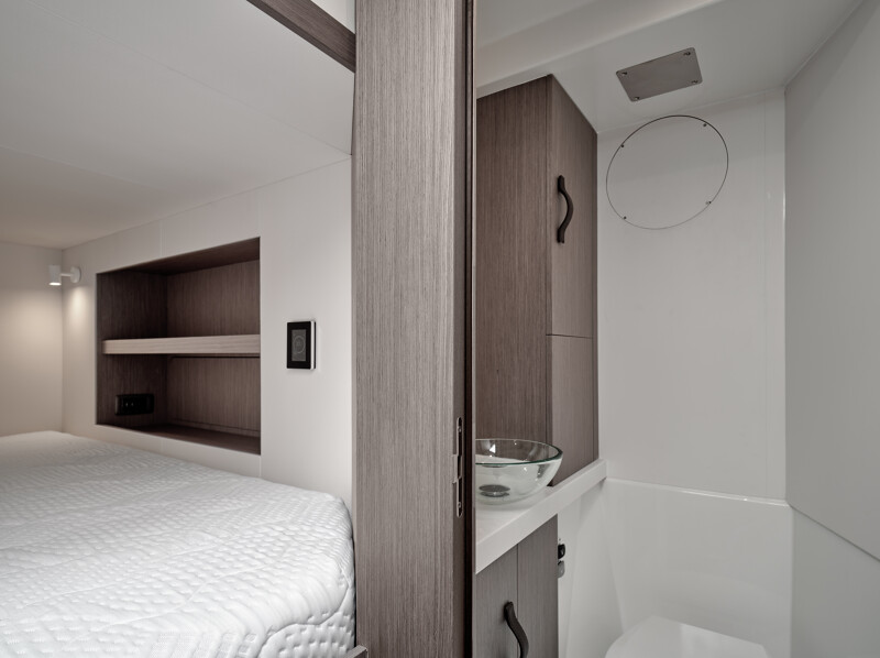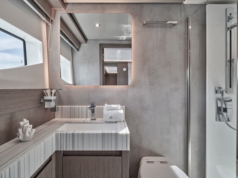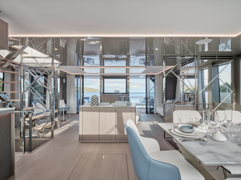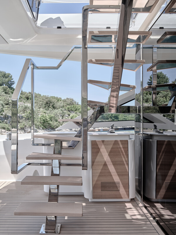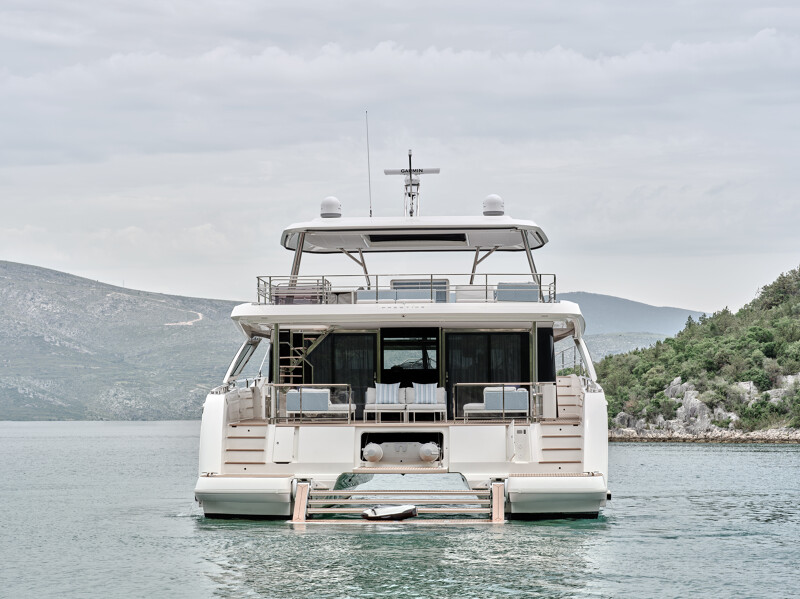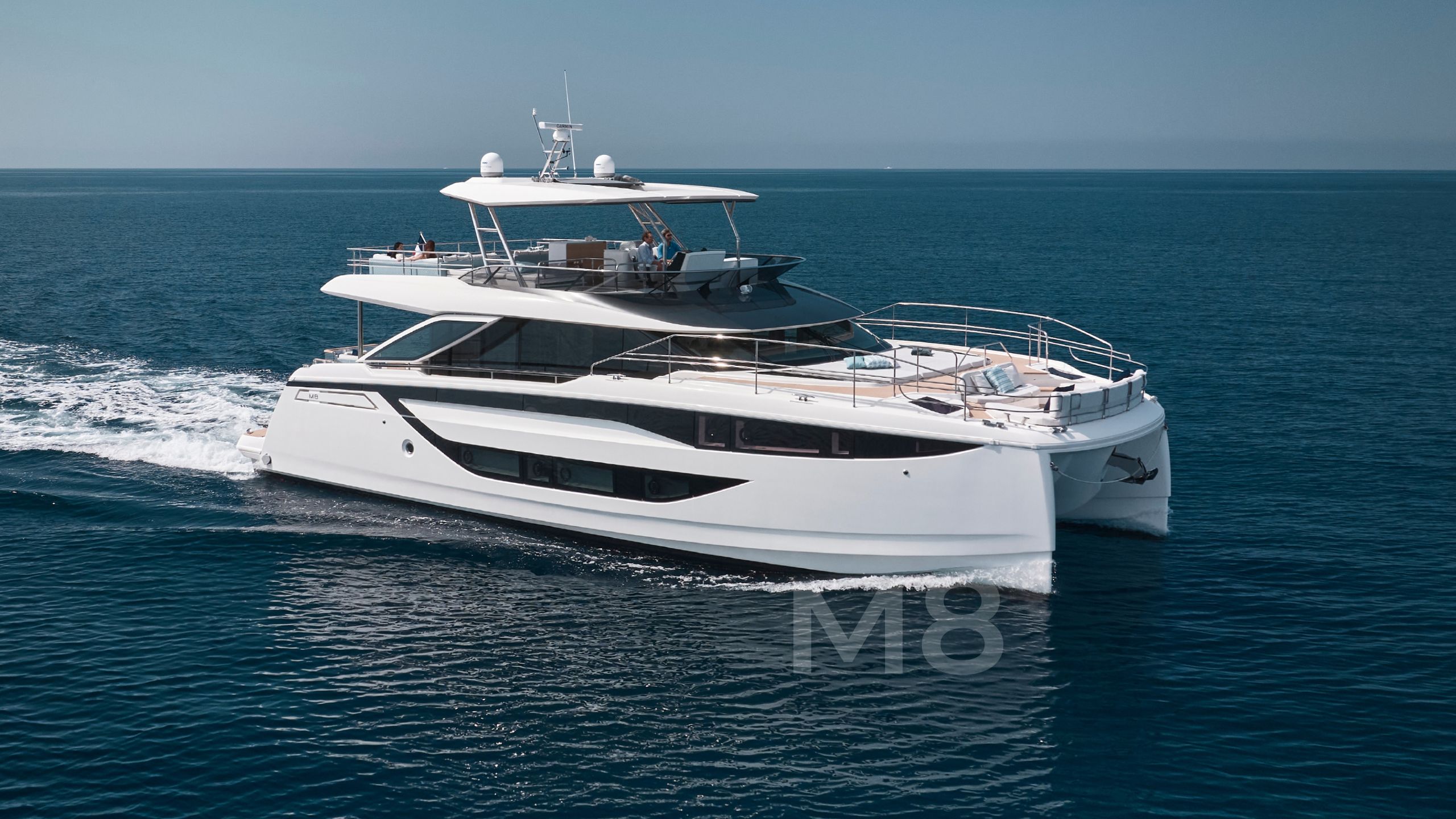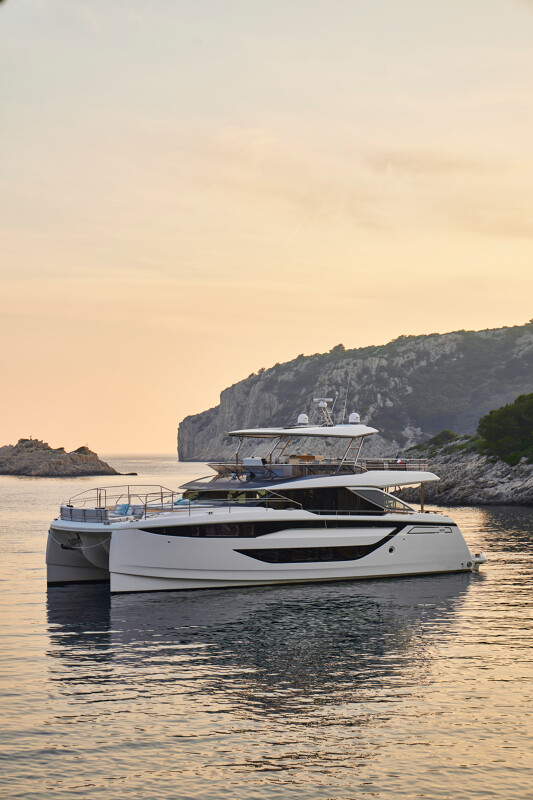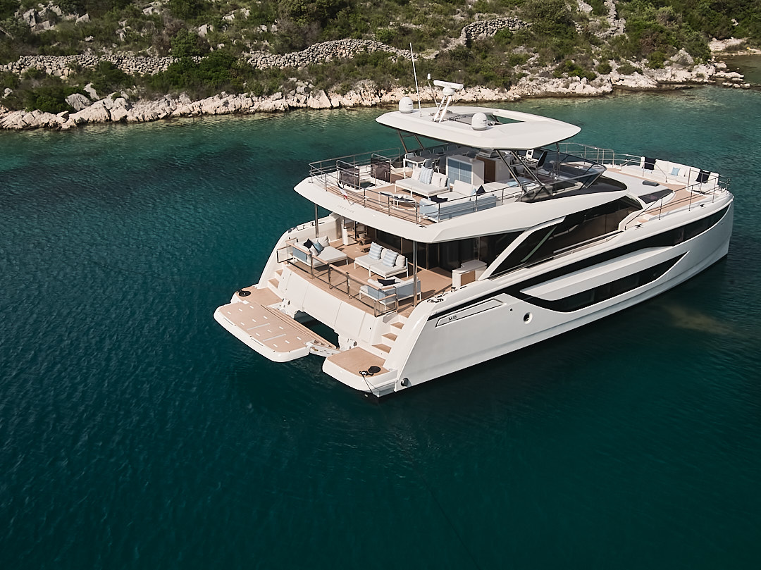 Setting itself apart from other catamaran yachts, the M8 boasts a unique motor-focused hull design, allowing for a narrower yet higher multi-hull with unprecedented dimensions. This design not only enhances maneuverability and docking ease but also provides exceptional stability at anchor and while cruising, making your journey a breeze.