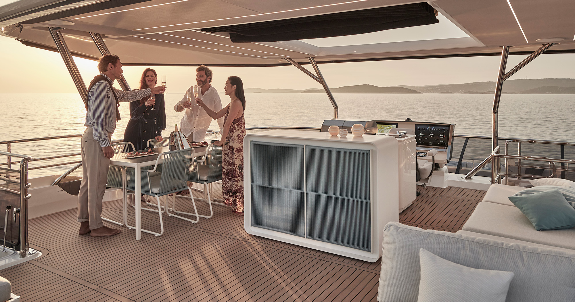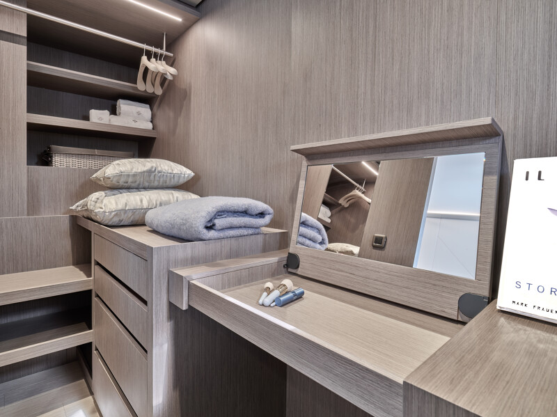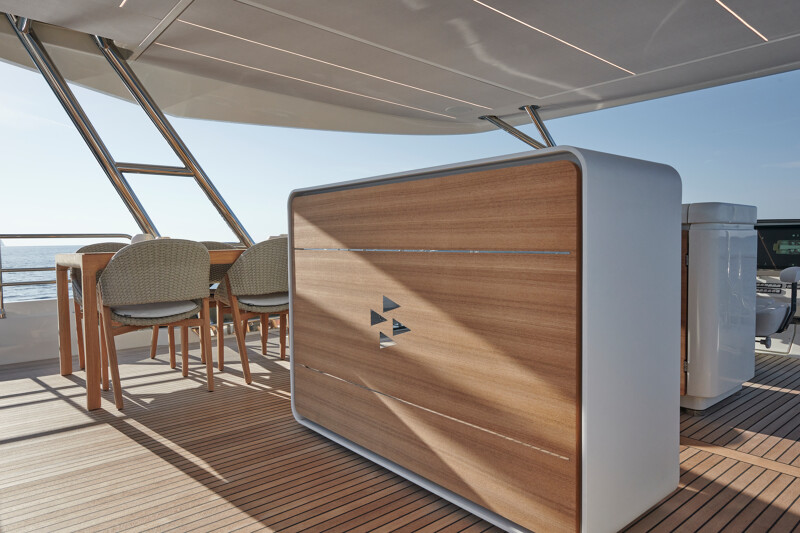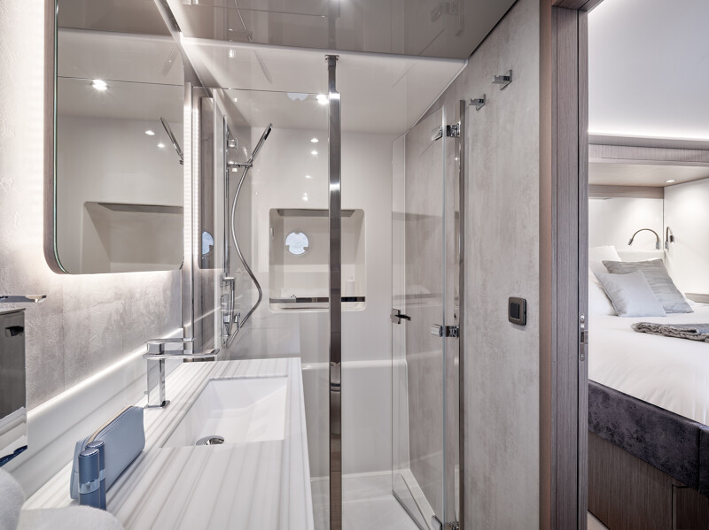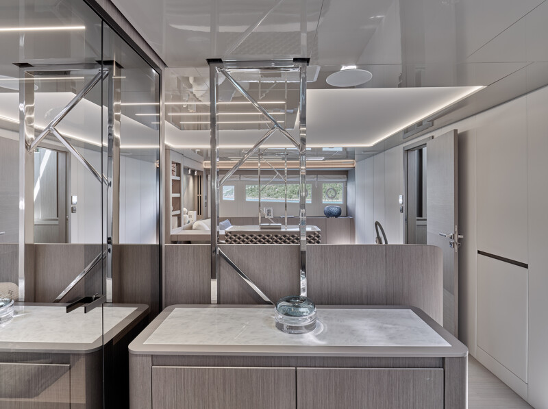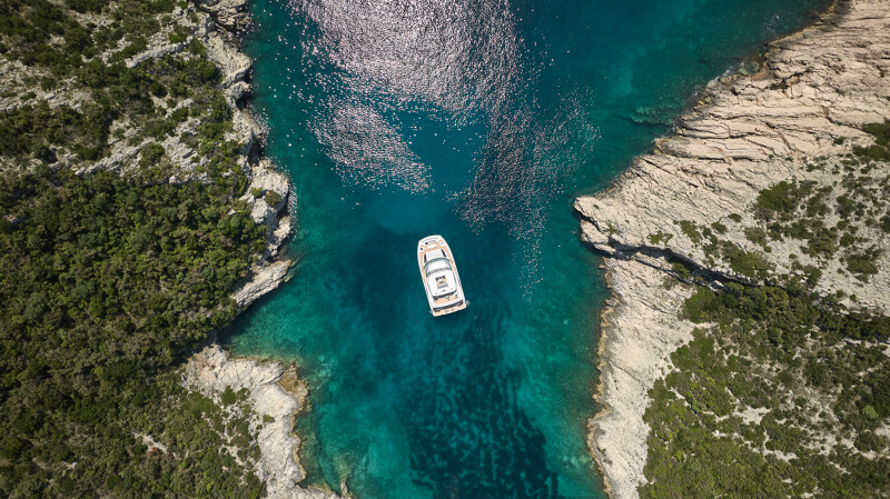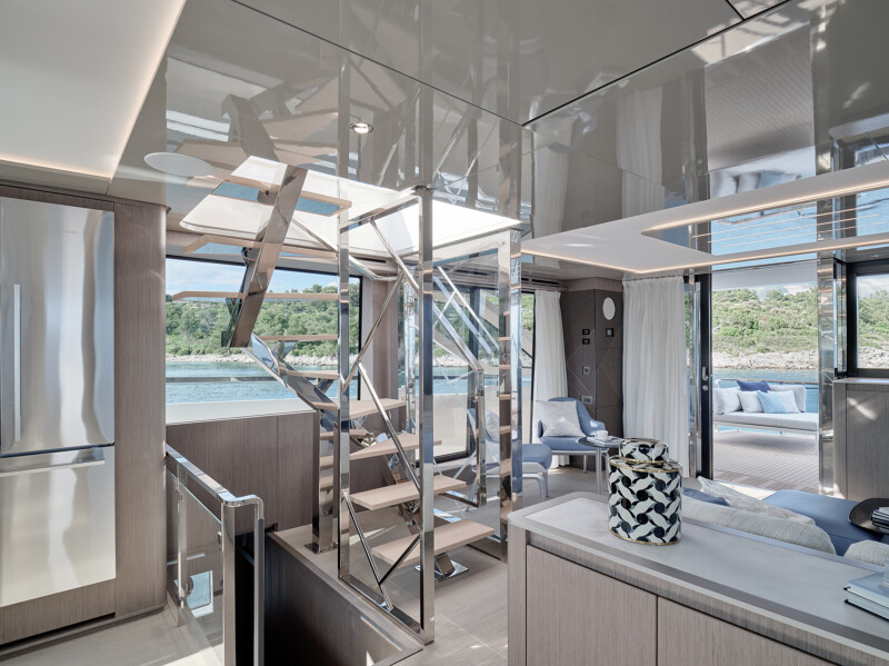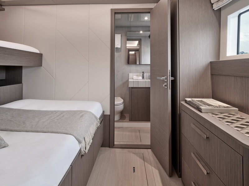 Setting itself apart from other catamaran yachts, the M8 boasts a unique motor-focused hull design, allowing for a narrower yet higher multi-hull with unprecedented dimensions. This design not only enhances maneuverability and docking ease but also provides exceptional stability at anchor and while cruising, making your journey a breeze.