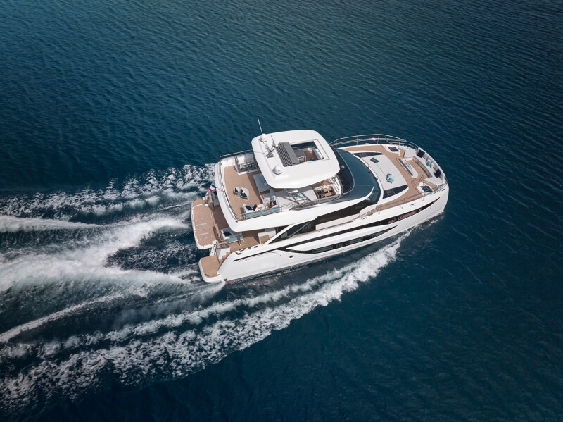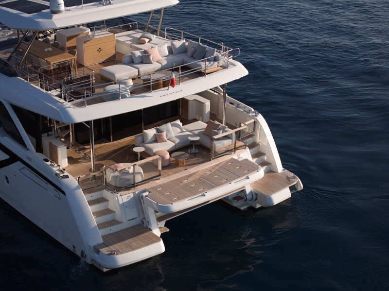 Experience the M8’s wide cruising range between 8-18 knots, along with reduced CO2 emissions and fuel consumption. The M8 continues the legacy of the M-Line series, following the release of the acclaimed Prestige M48 catamaran yacht. Get ready to cruise in style and comfort aboard the prestigious M8.
