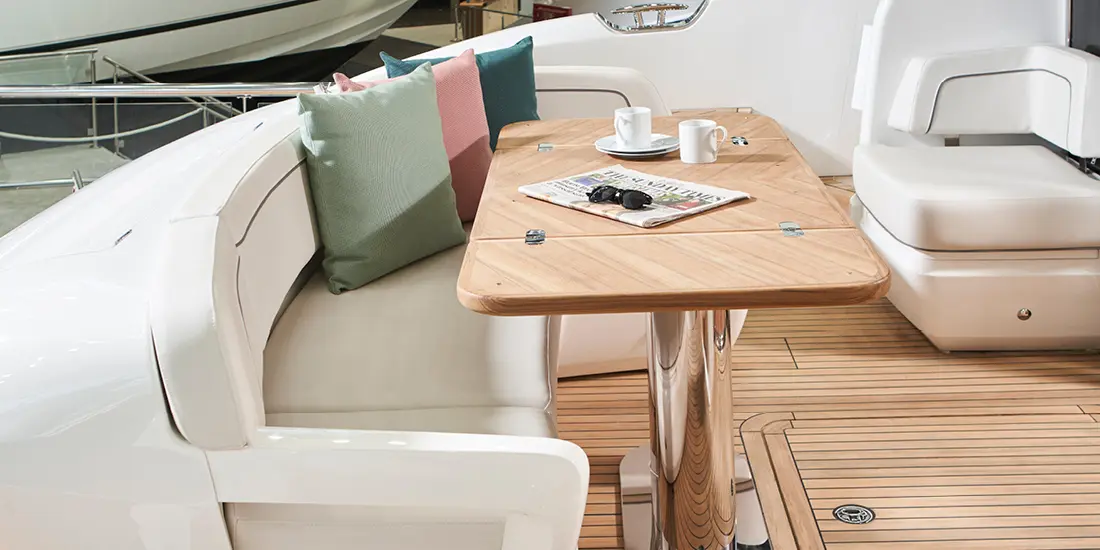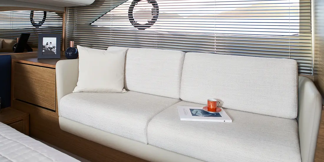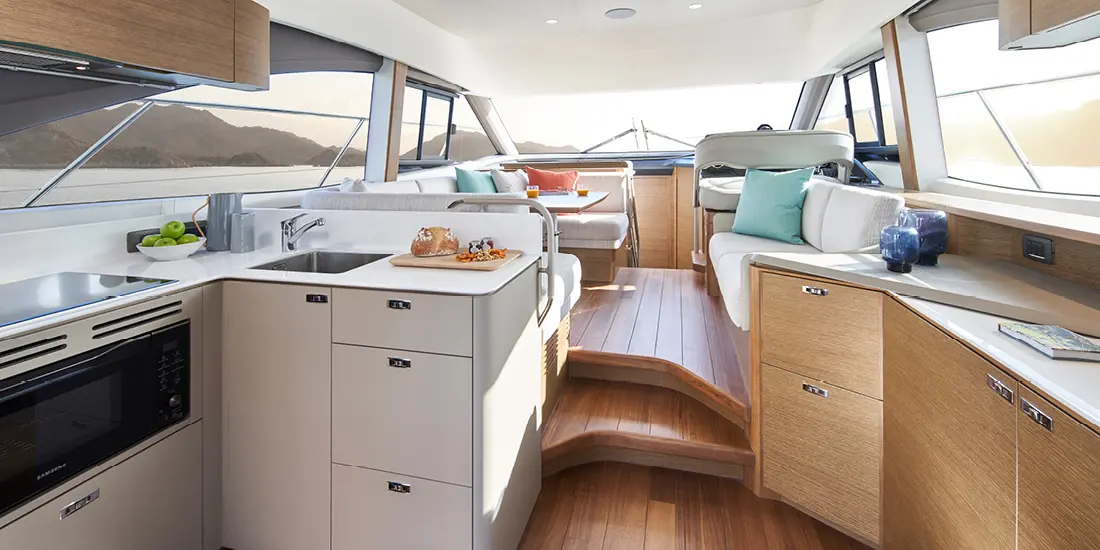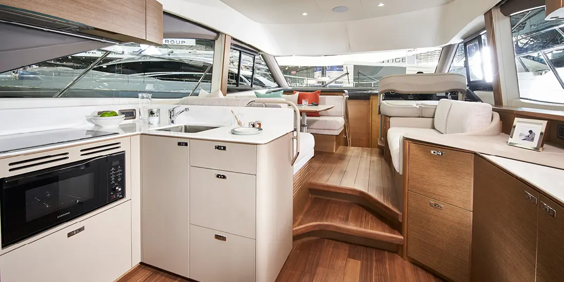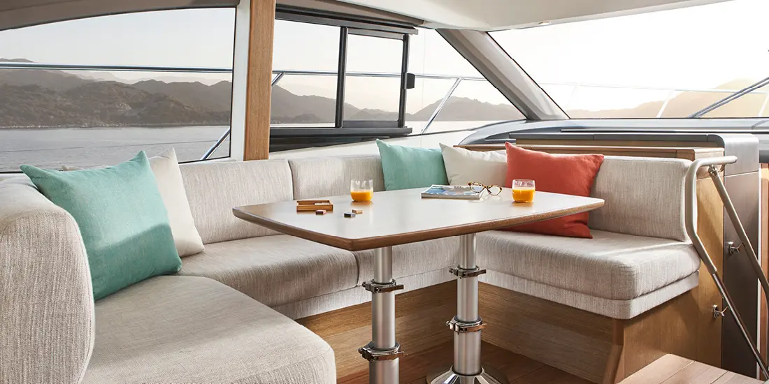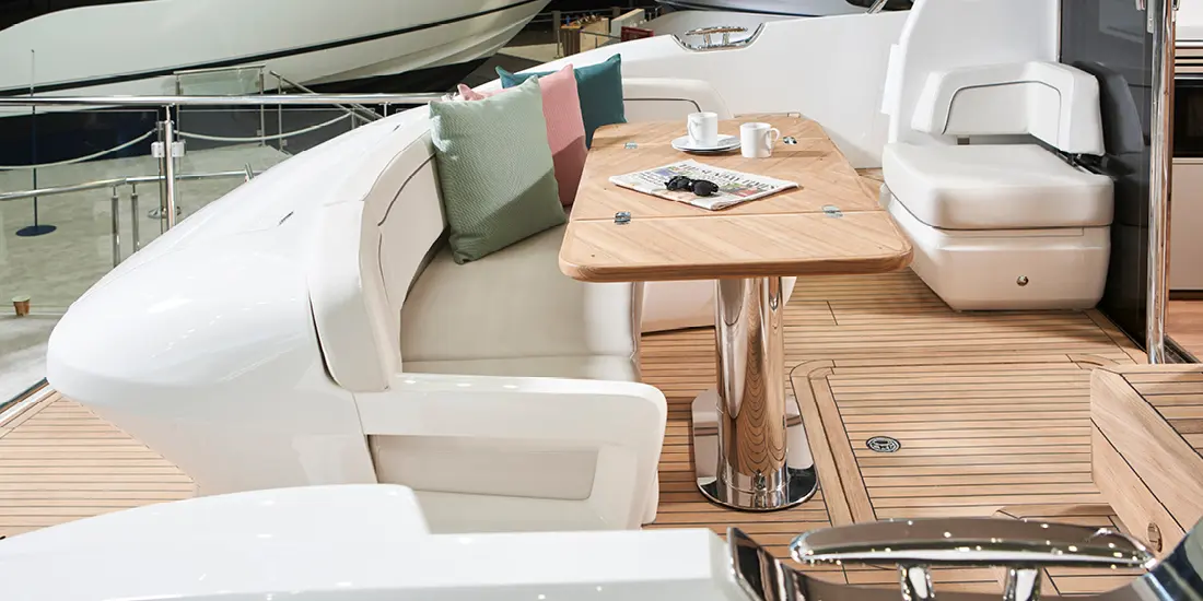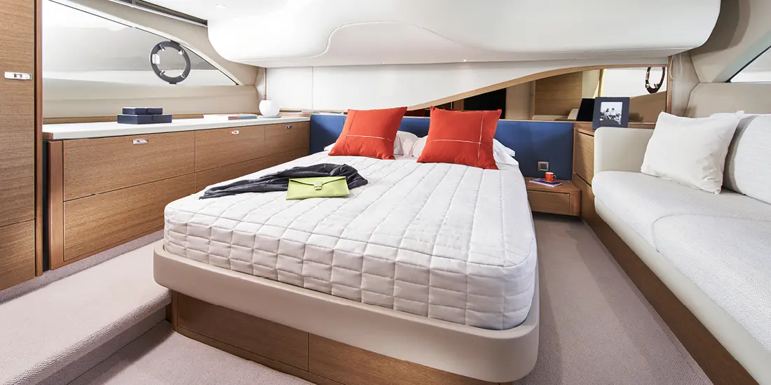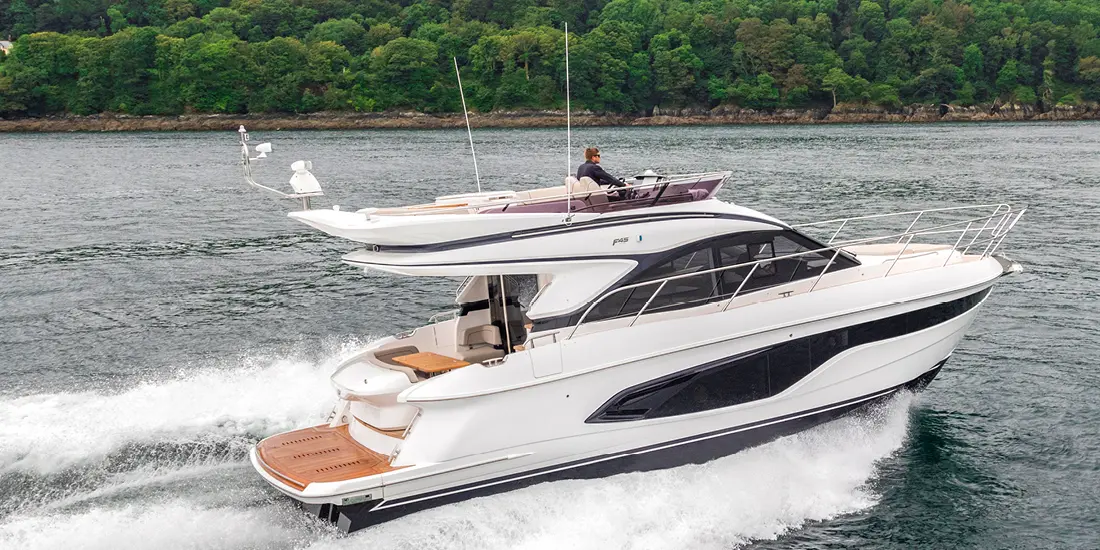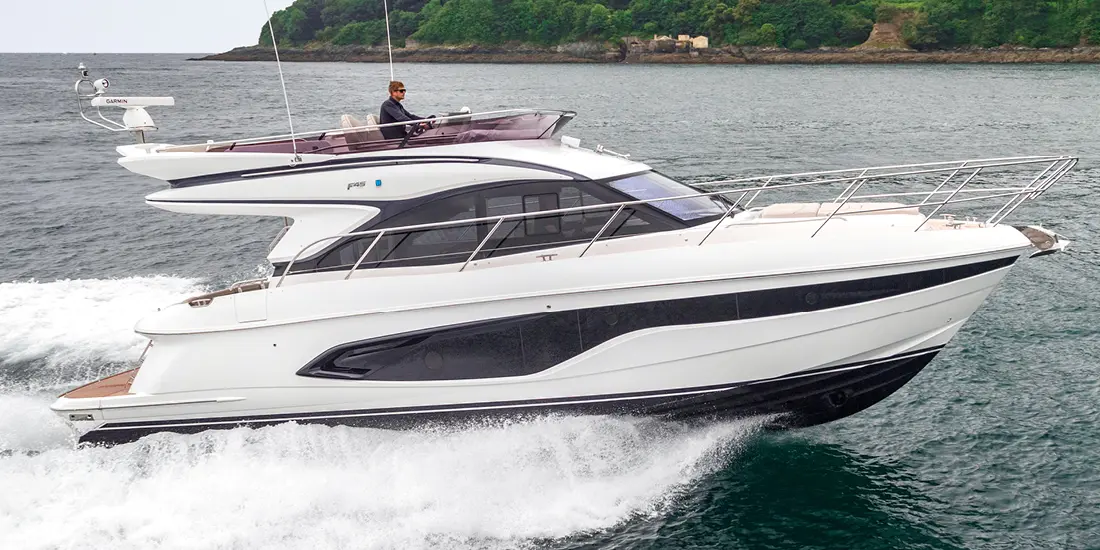 With its elegant full-length hull windows, impeccable surfacing, and unique design elements, the F45 truly stands out as the epitome of small flybridge yachts. Whether you’re cruising at top speed or enjoying a leisurely day on the water, the F45 Princess is sure to make a statement wherever she goes.