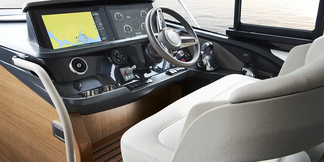 Powered by Volvo IPS 600 engines, the F45 is not just a beauty to behold but also a powerhouse on the water, reaching a top speed of 31 knots with ease.
