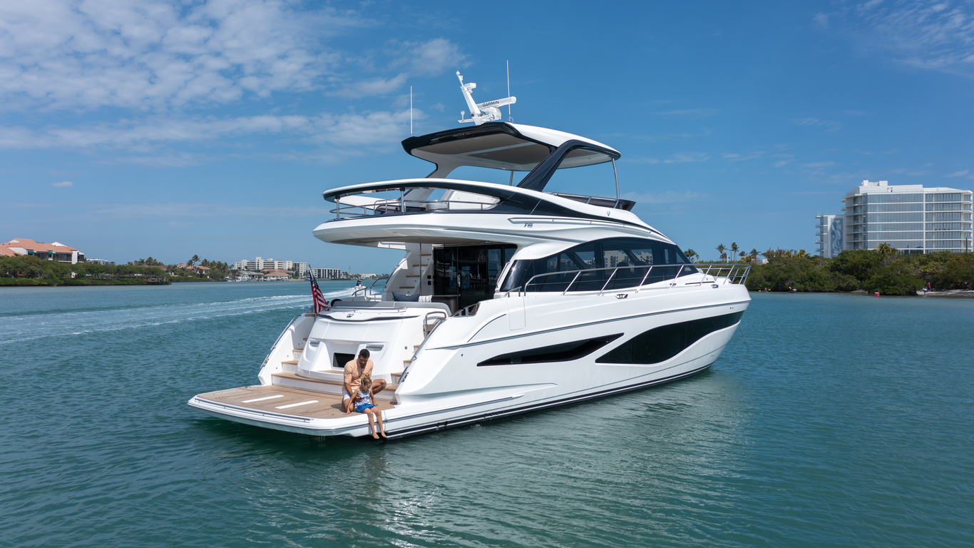 The Princess Yachts F65 is a luxury flybridge yacht that offers several features that make it an attractive option for those looking for a high-end boating experience. For starters, the F65 motor yacht has a spacious interior and exterior layout, making it ideal for entertaining guests or spending time with family and friends.