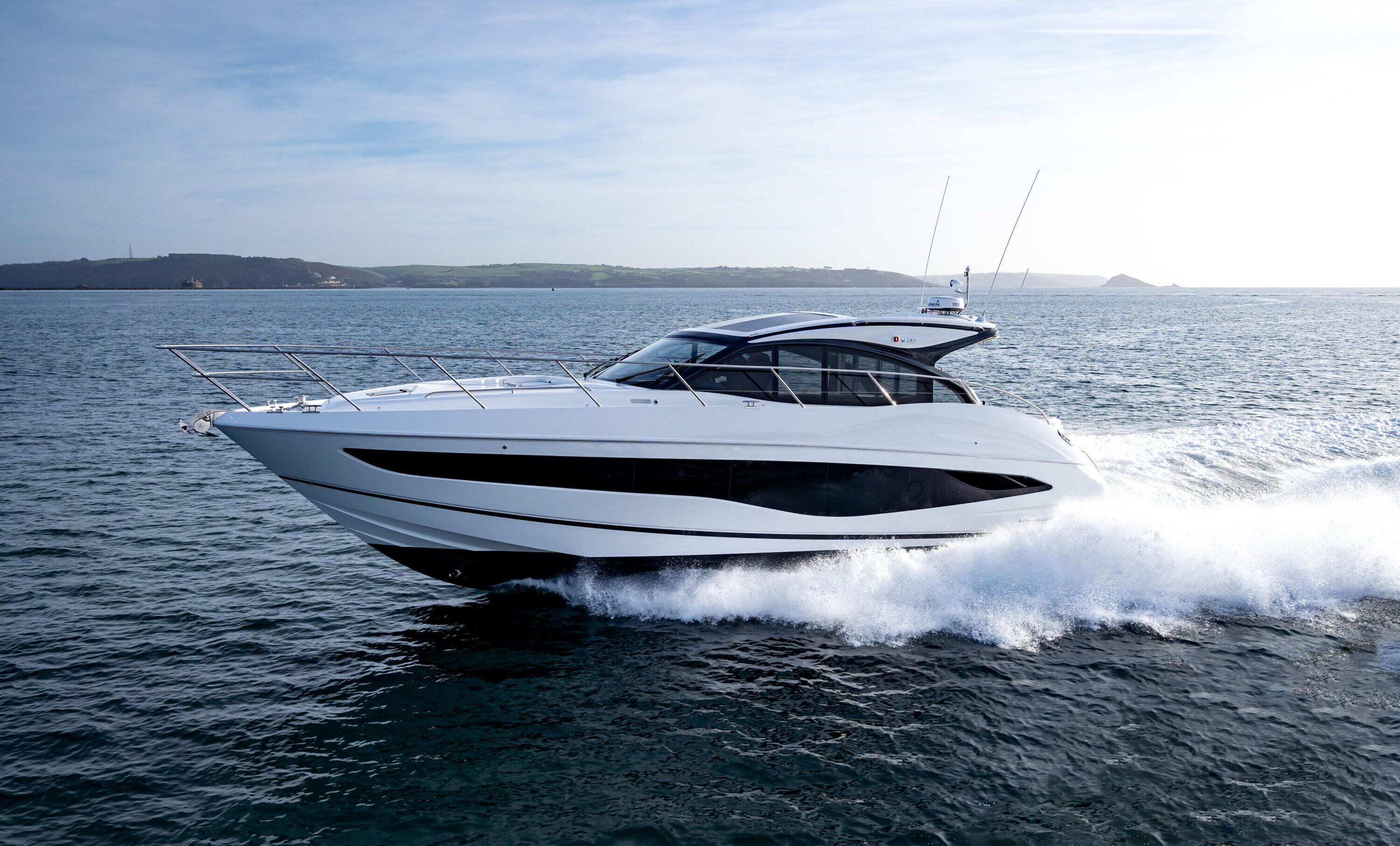 Twin Volvo Penta IPS600 or IPS650 engines are at the heart of the new deep-V hull and deliver maximum speeds of over 30 knots.
