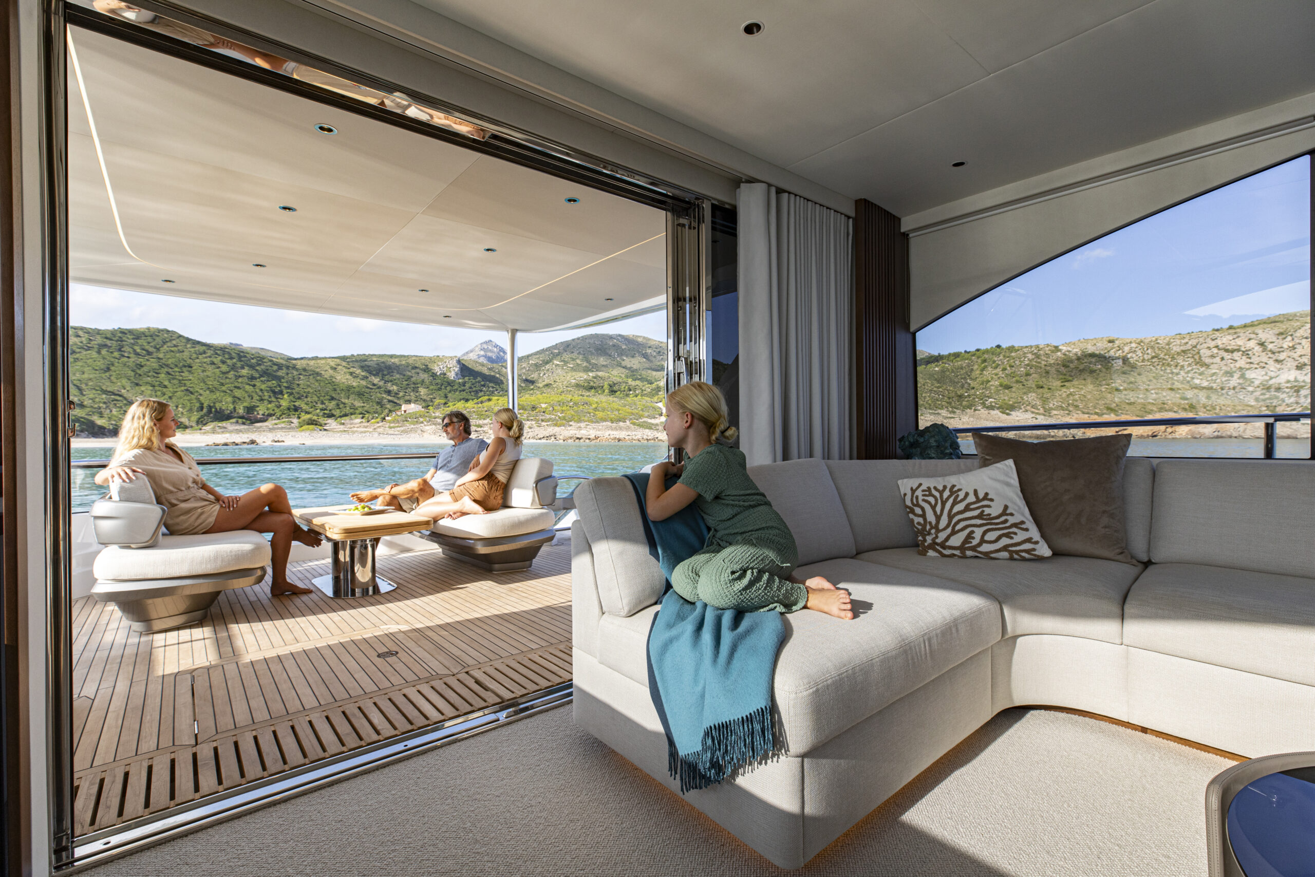 Setting itself apart from competitors, the Y80 motor yacht showcases remarkable flexibility within its 80-foot size, offering ample space and volume without compromising its elegant and sleek design.