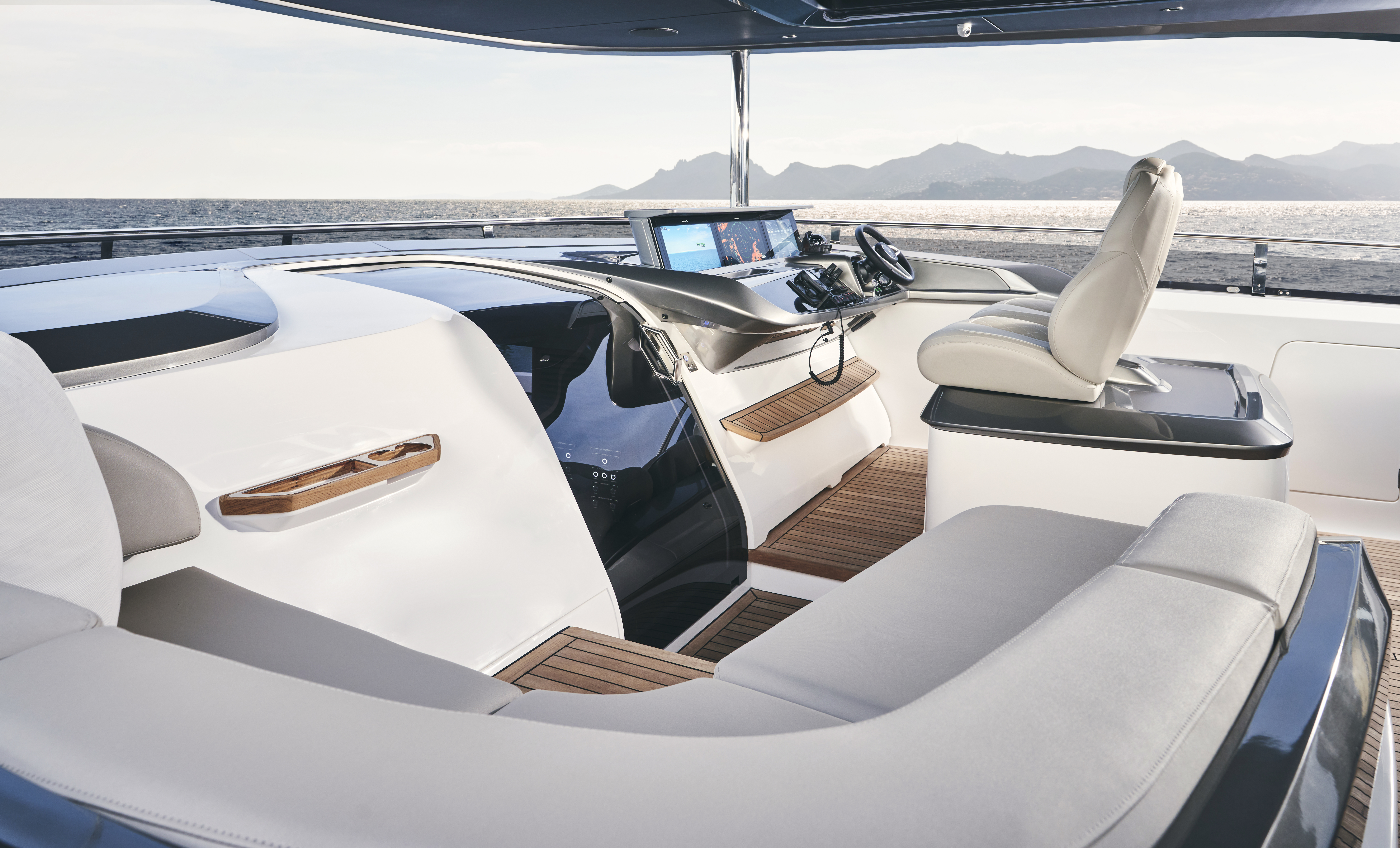The Y95 offers customizable layouts and a fresh interior design concept, allowing you to collaborate with a Princess Design Consultant. With an interior volume similar to a superyacht, the main deck features a luxurious master stateroom and four guest cabins. Crew accommodation includes a comfortable Captain’s cabin with a double bed.