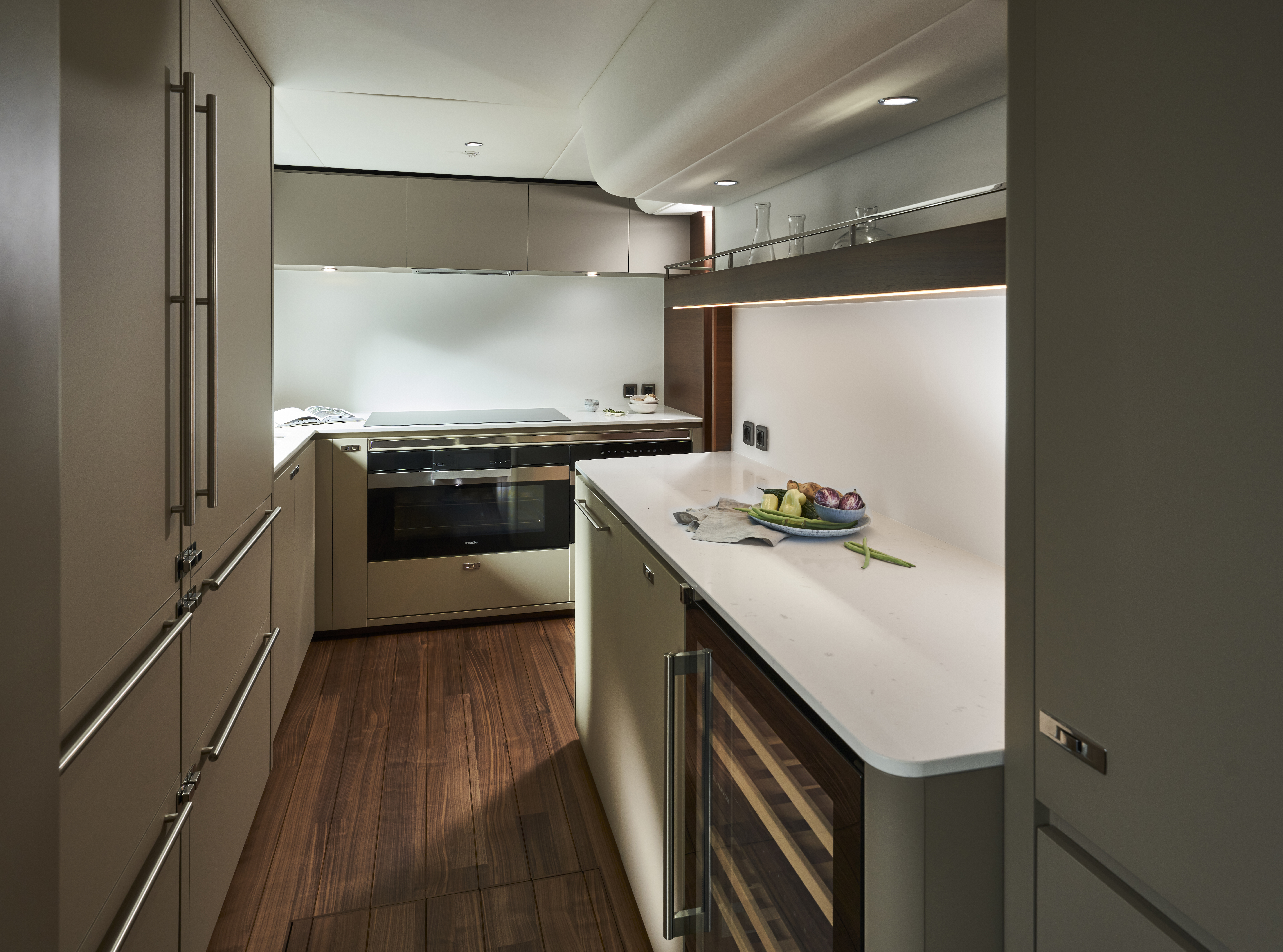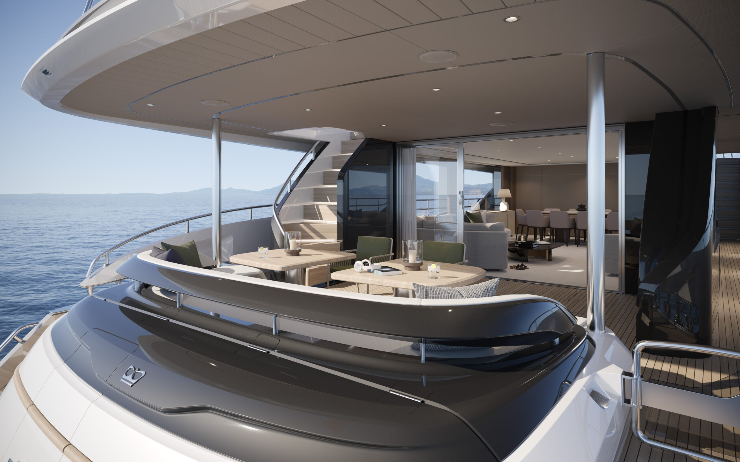 Featuring a spacious garage, transformer bathing platform, and the option of a beach club, your time on the water is guaranteed to be maximally enjoyable. The yacht’s exterior design showcases the longest and most expansive hull windows ever seen on a Princess yacht, while the indoor and outdoor living spaces rival those of larger yachts.
