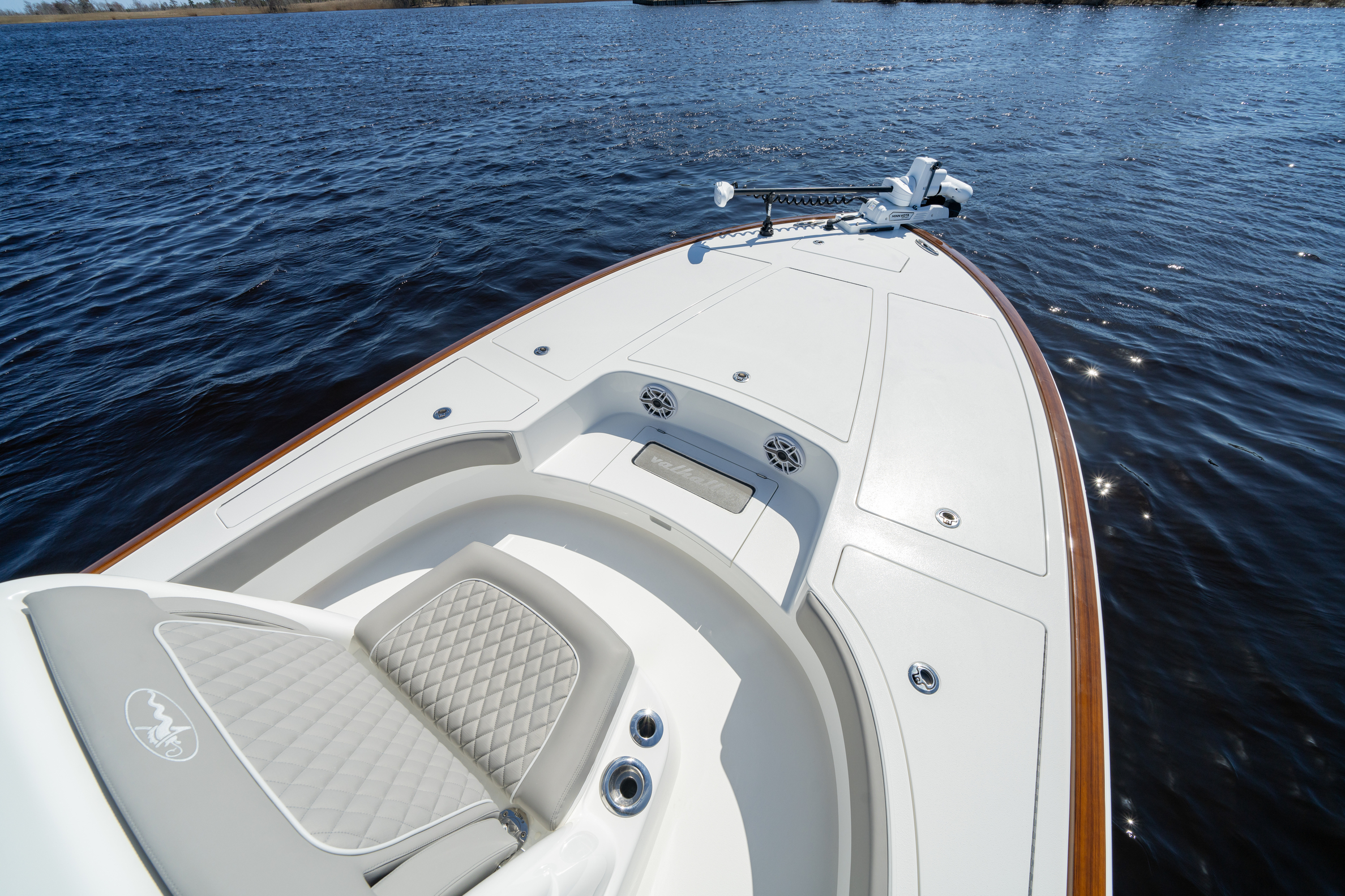 The V-28 Bay boasts a shallow draft of 18″ to 22″, making it the perfect vessel for navigating through shallow water bays and reefs. Equipped with dual 25-gallon live wells on the aft casting platform, which can be expanded to a whopping 120 gallons, this boat features an effortless plumbing system connected to a Whale Gulper Pump for seamless cleaning.