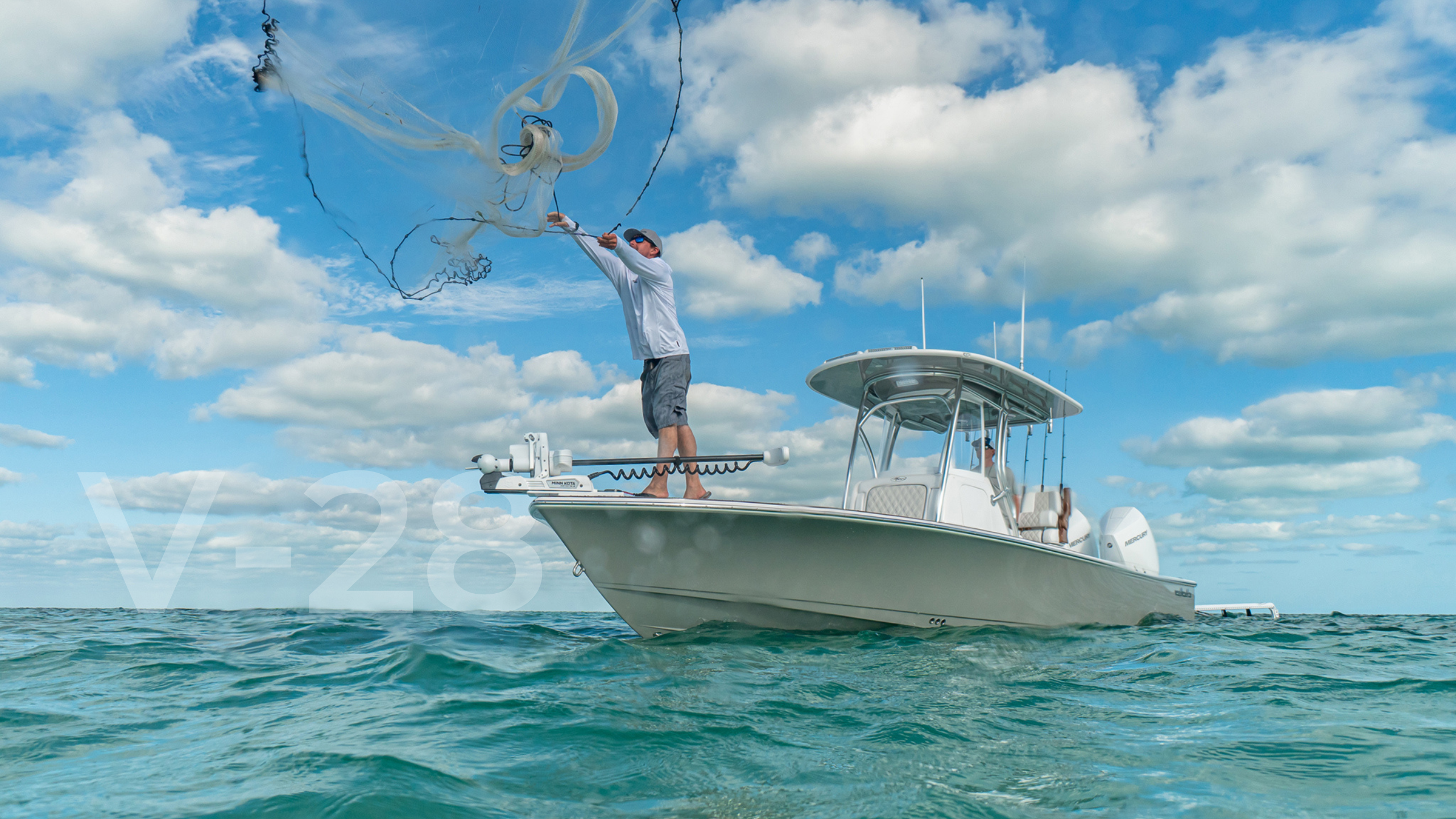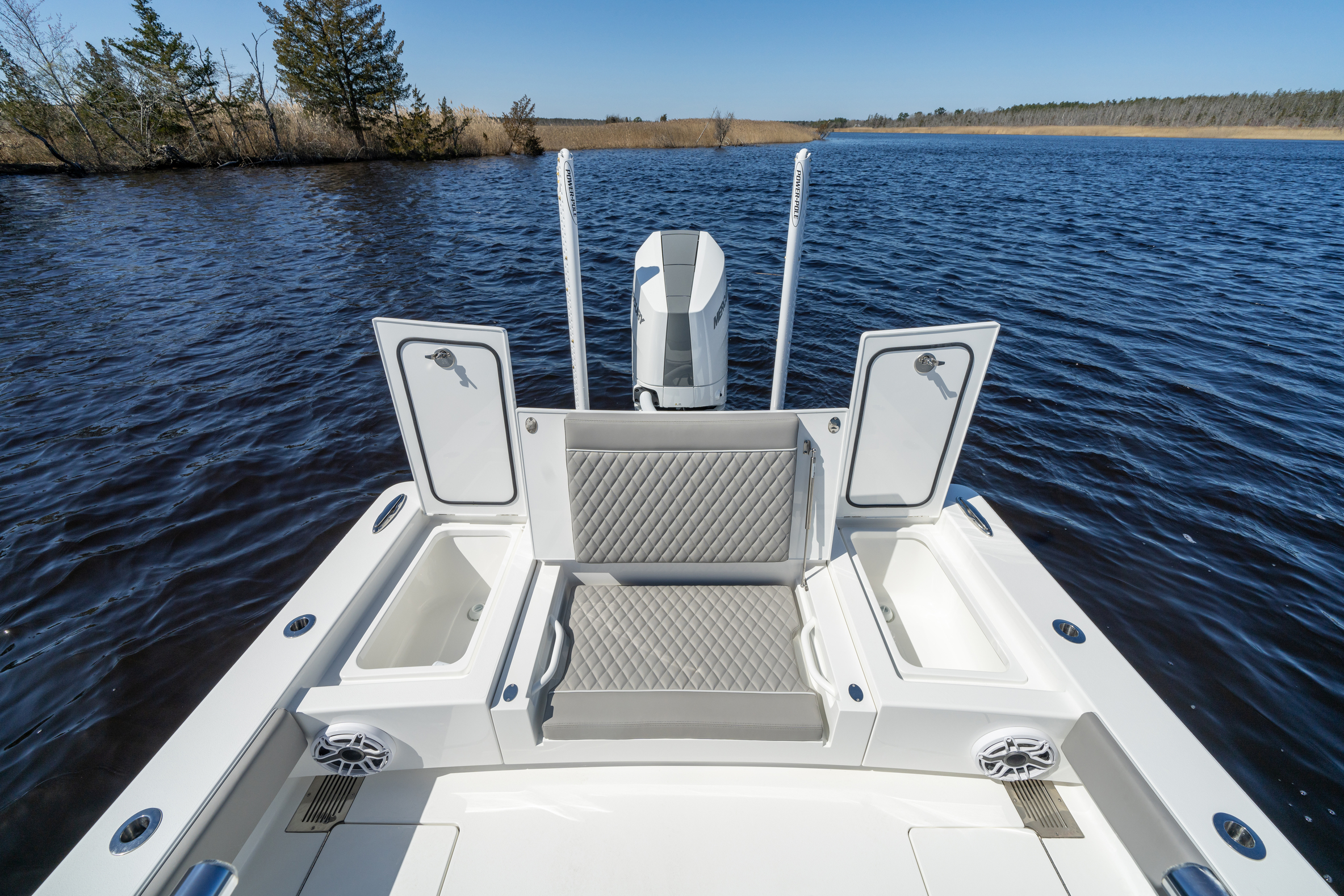 When it comes to seating, the V-28 gives you a range of options to choose from. You can enjoy a flip-up bench seat on the aft casting deck, a leaning post or helm seat module, and a console seat. And for added comfort on the bow casting deck, you have the choice to add seat cushions and teak backrests.