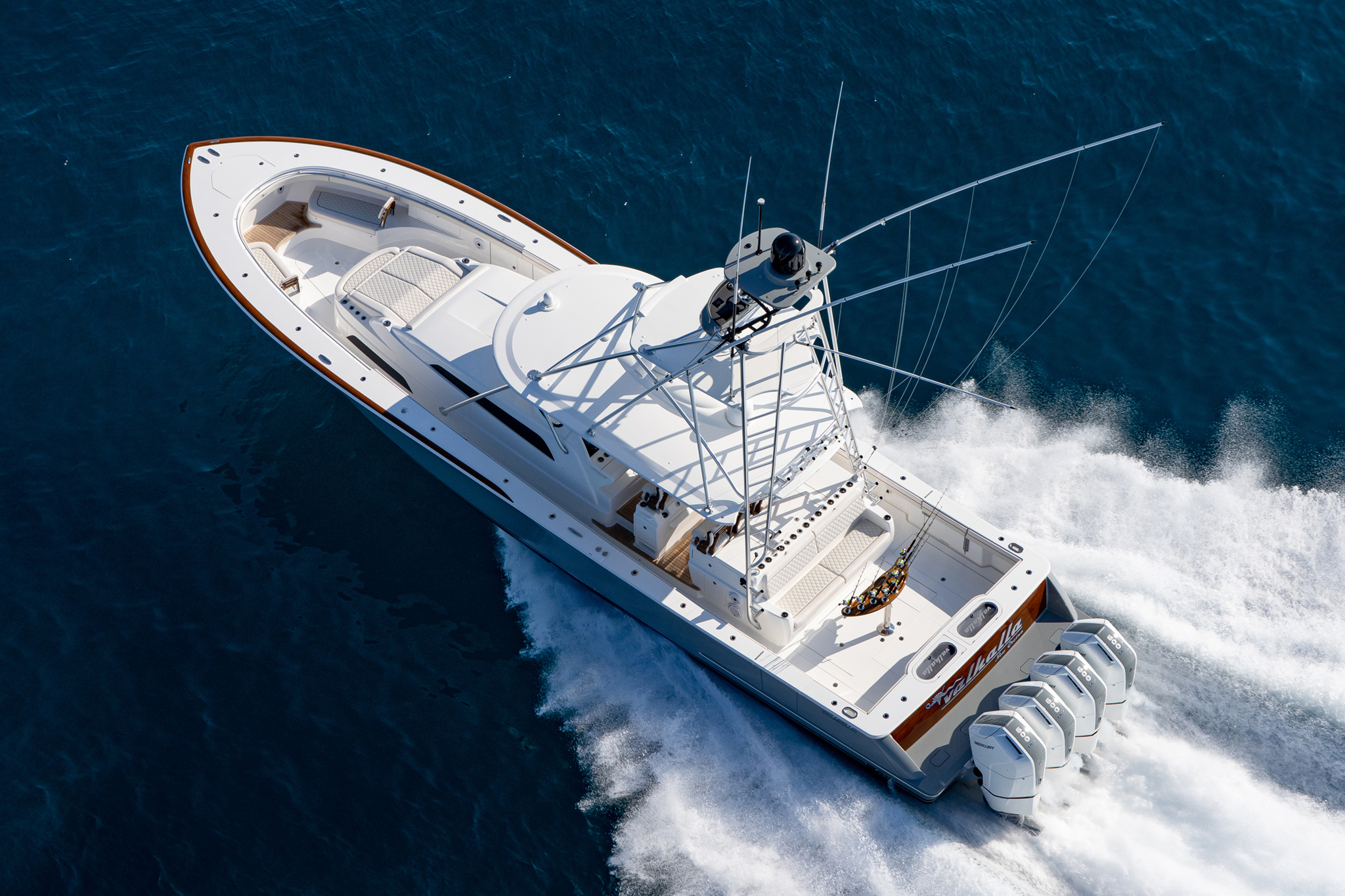 The Valhalla Boatworks V-55 sets a new standard for mid-size boats, combining the qualities of a luxury sportfishing yacht and a large center console. With speed, maneuverability, and ample space, it offers unparalleled luxury and performance in its class.