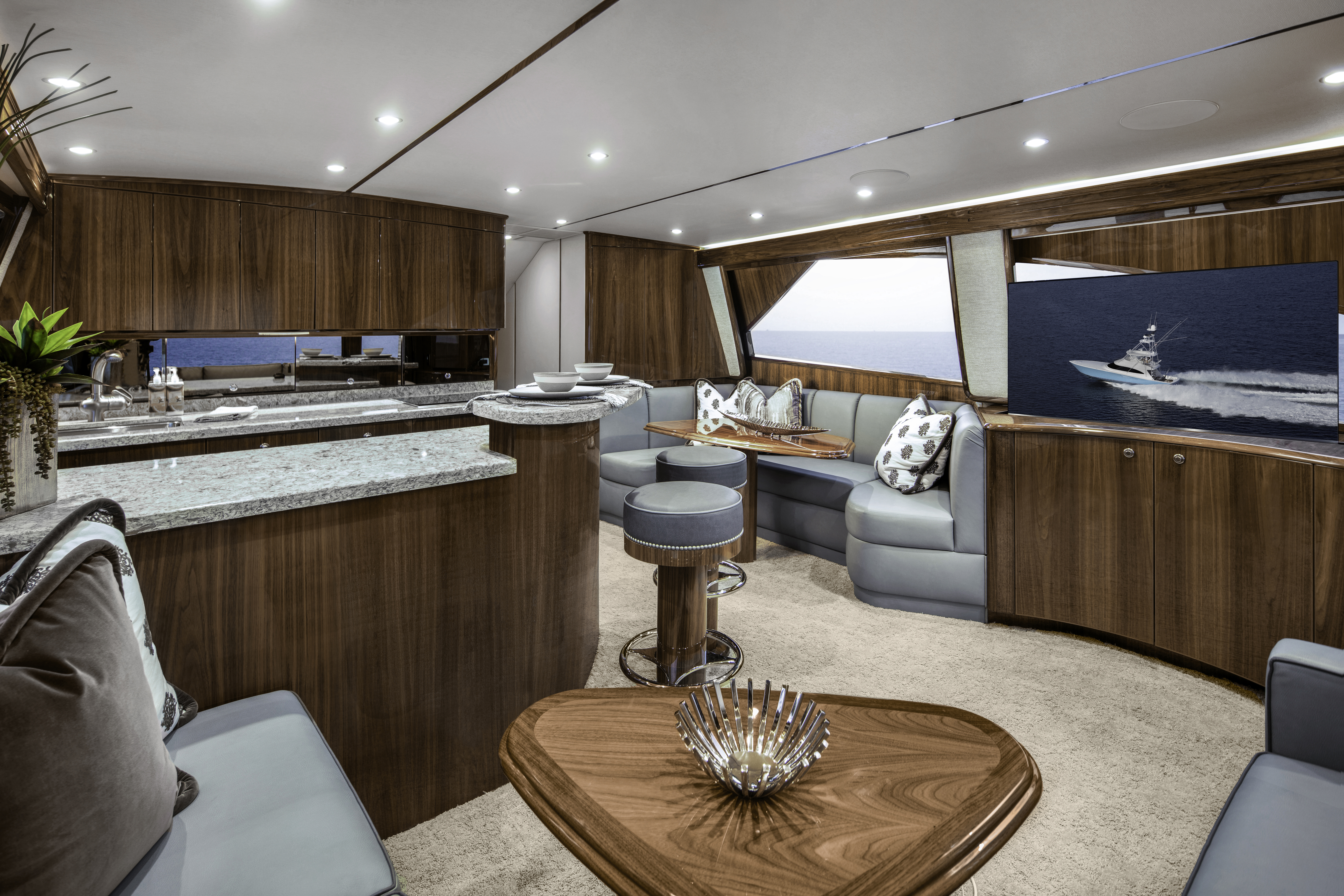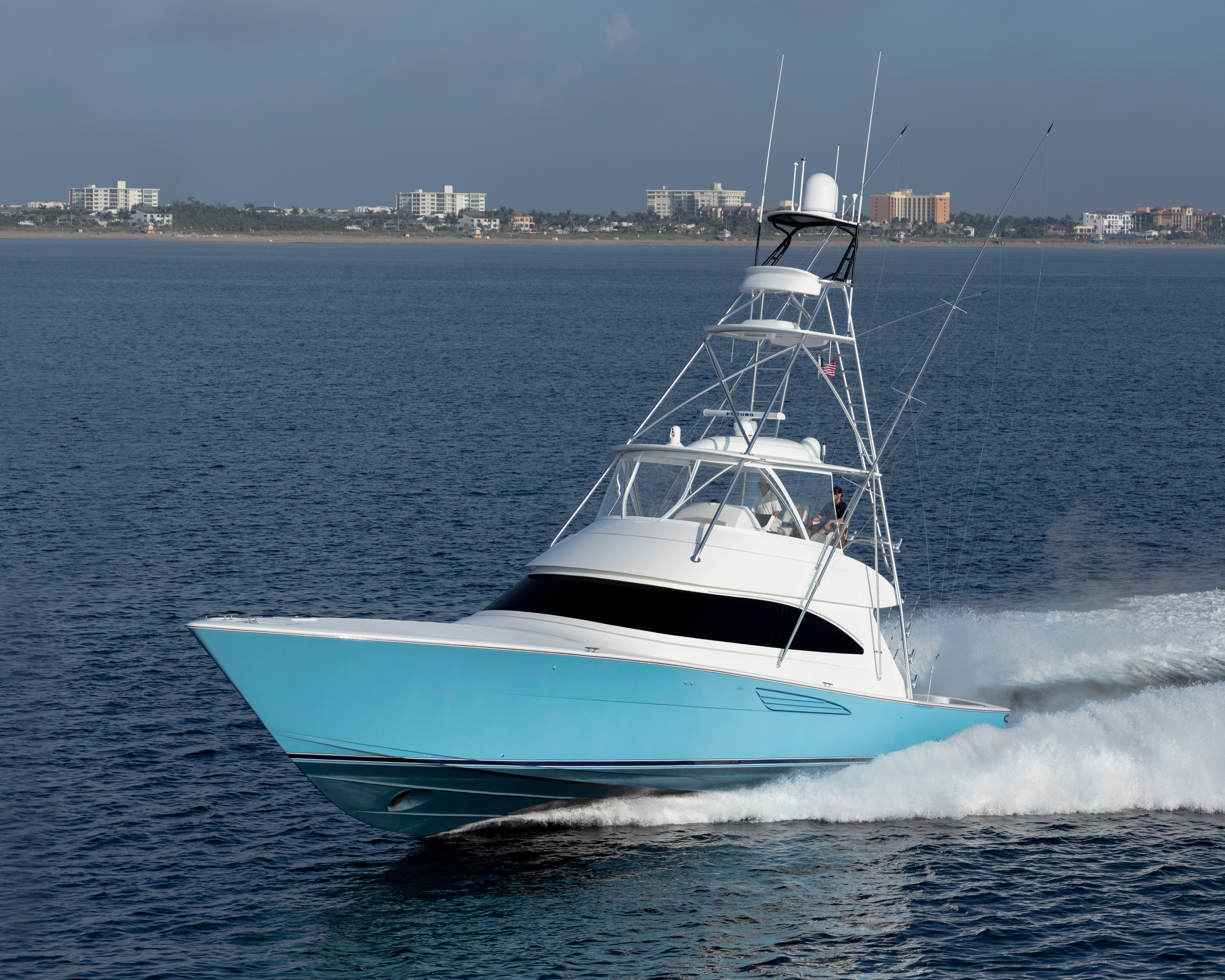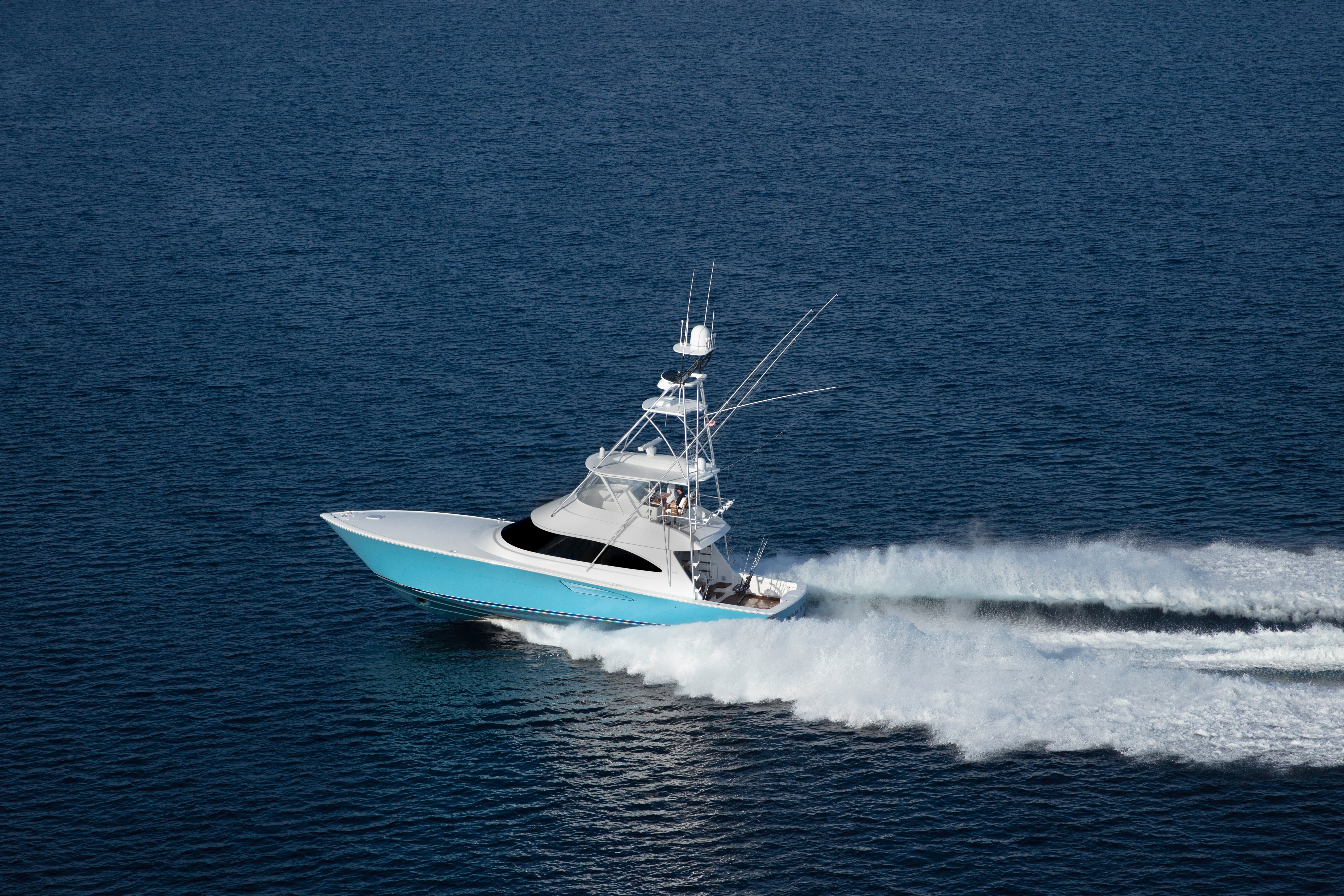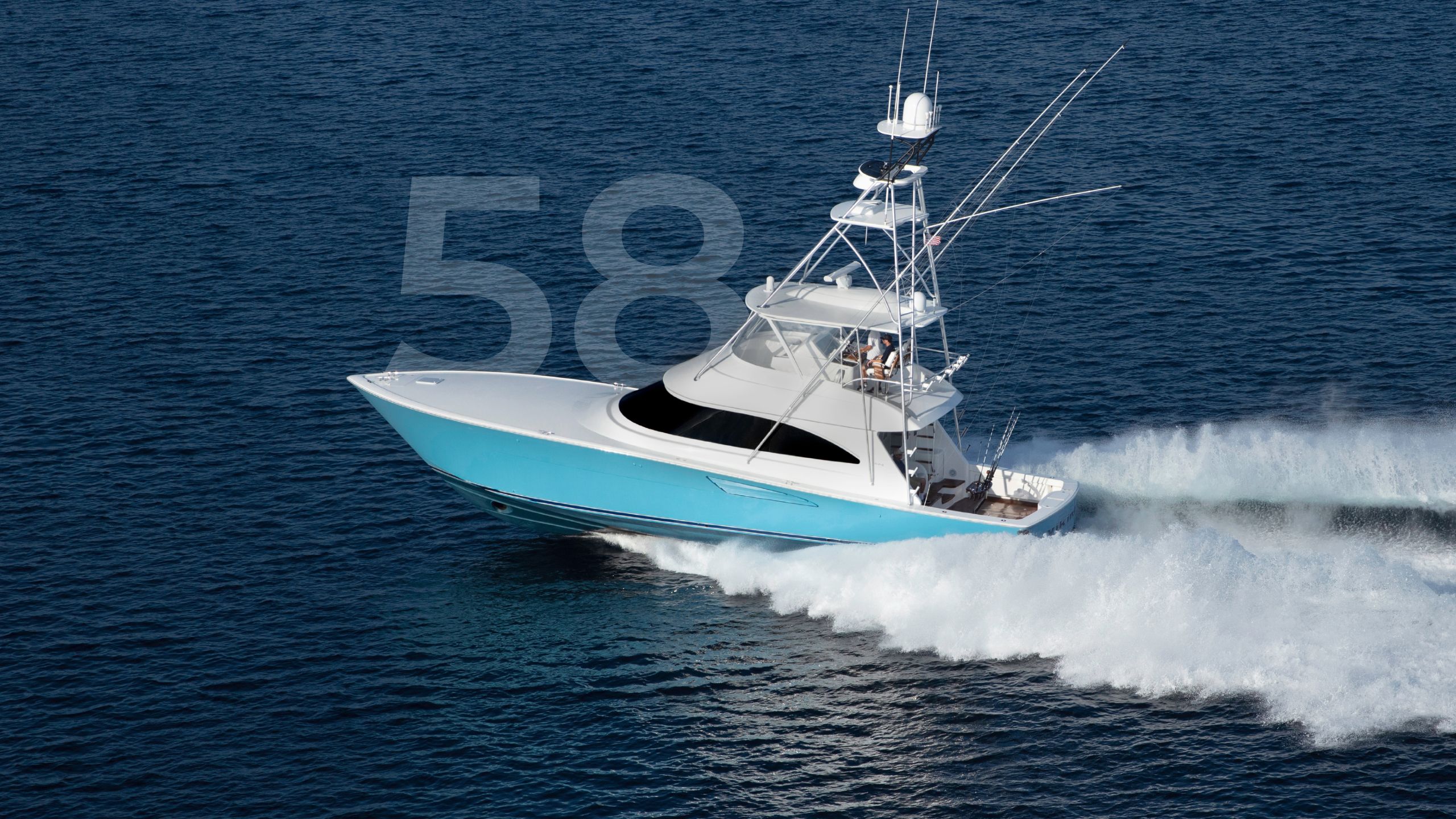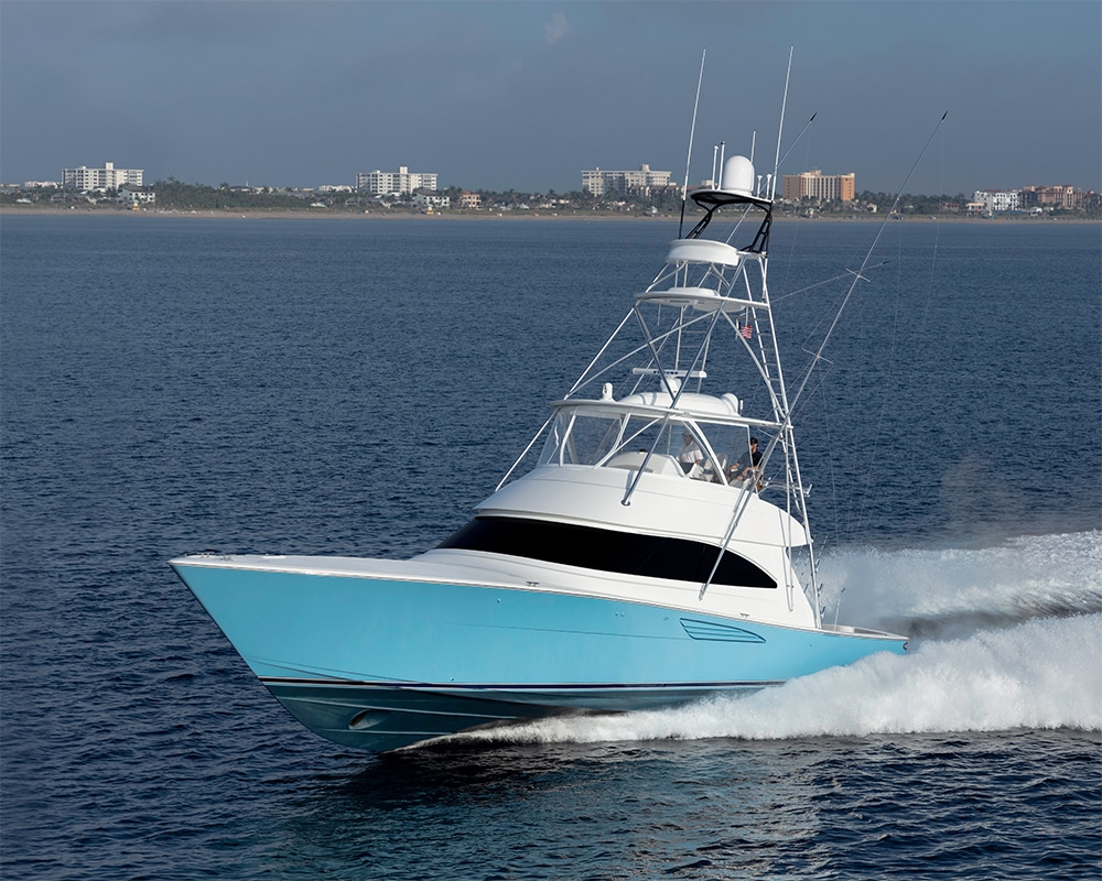 The 58 Convertible has garnered rave reviews for its exceptional dry ride, agile maneuverability, and generous cockpit and interior space. Designed with user-friendliness in mind, this sportfish yacht boasts advanced engineering and effortless maintenance.