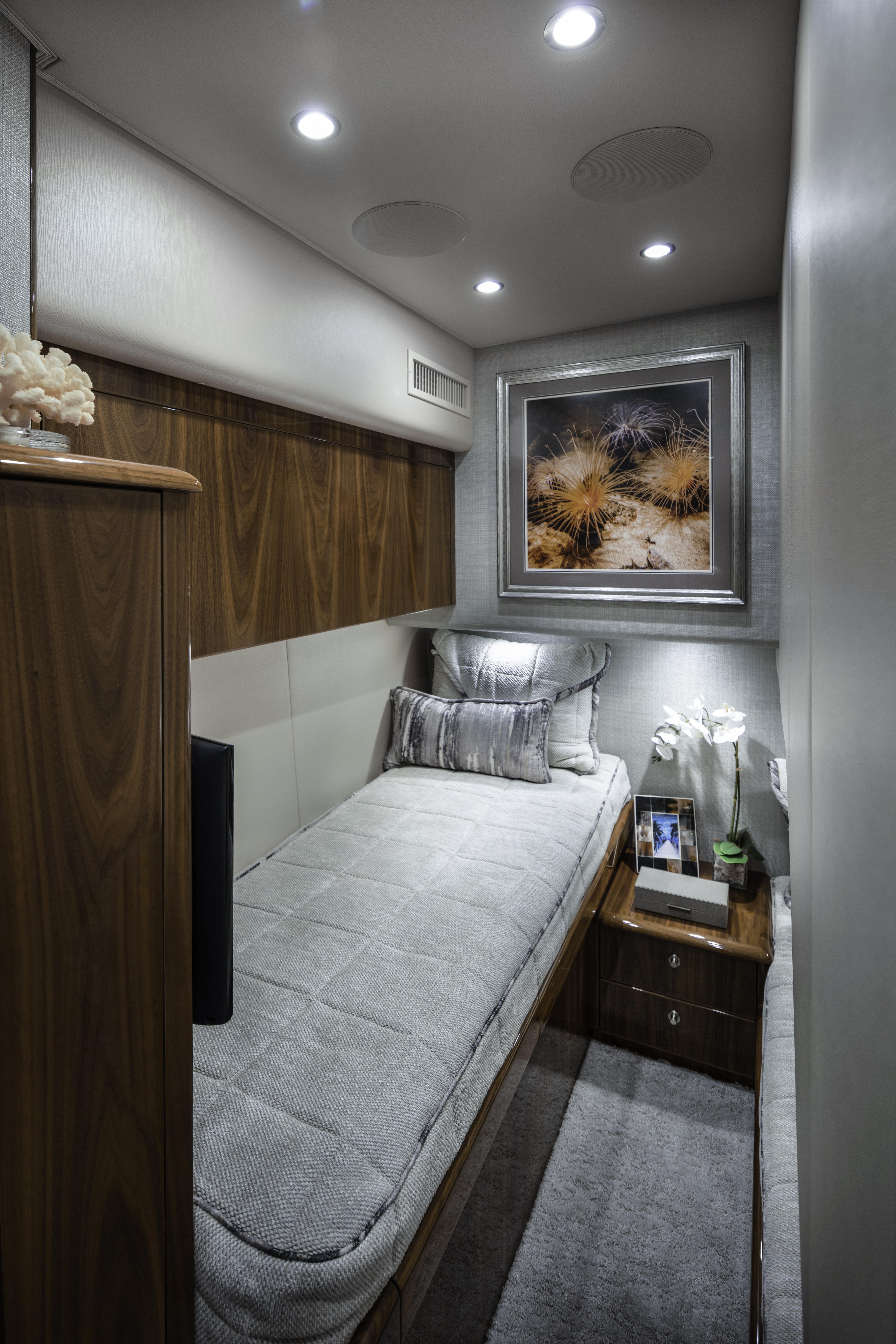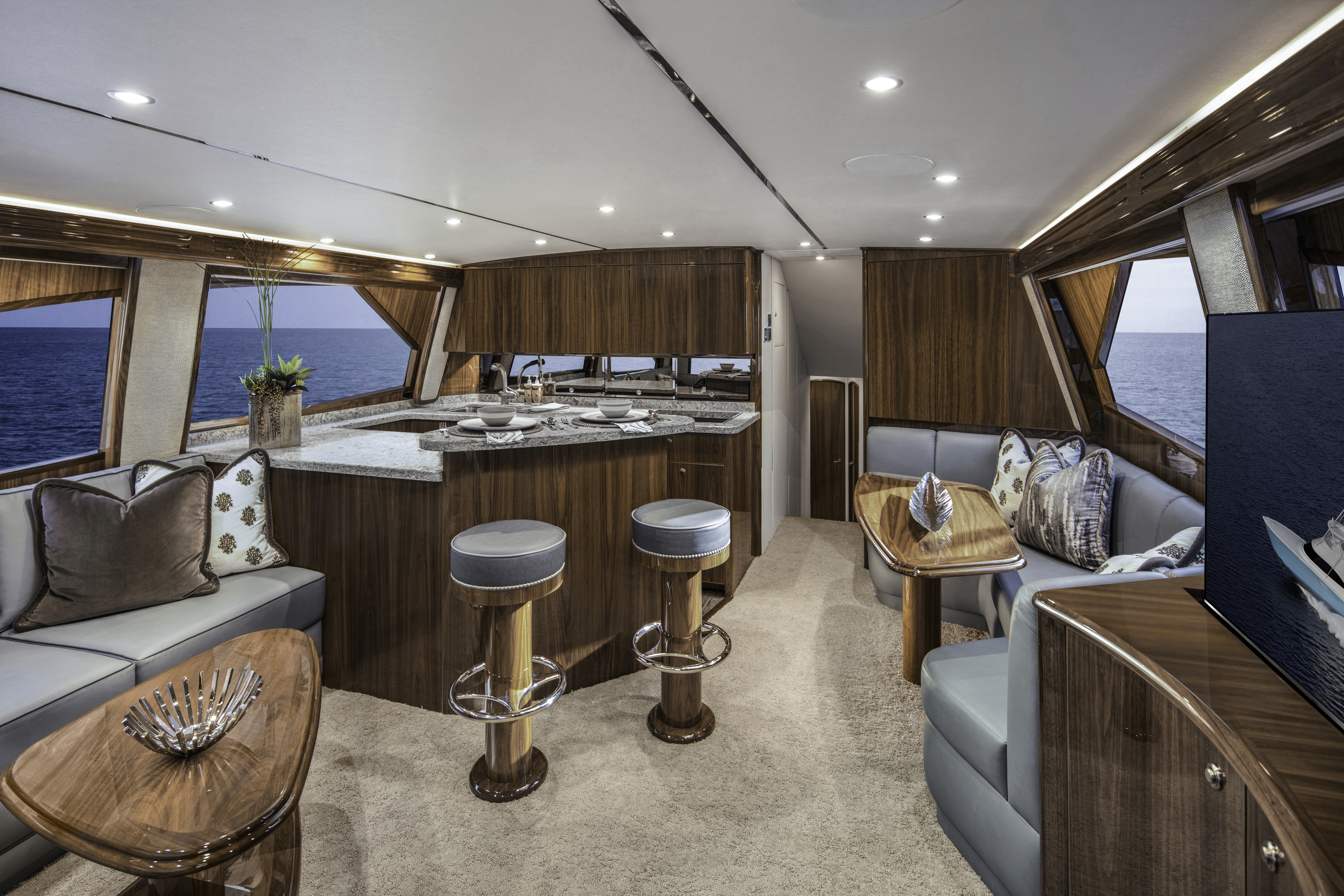 Not only is the 58C’s construction focused on strength, but it also prioritizes weight reduction for enhanced performance. Powered by robust engines, the propulsion package delivers impressive speeds and extended range. The engine room is equipped with state-of-the-art machinery, ensuring peak performance at all times.