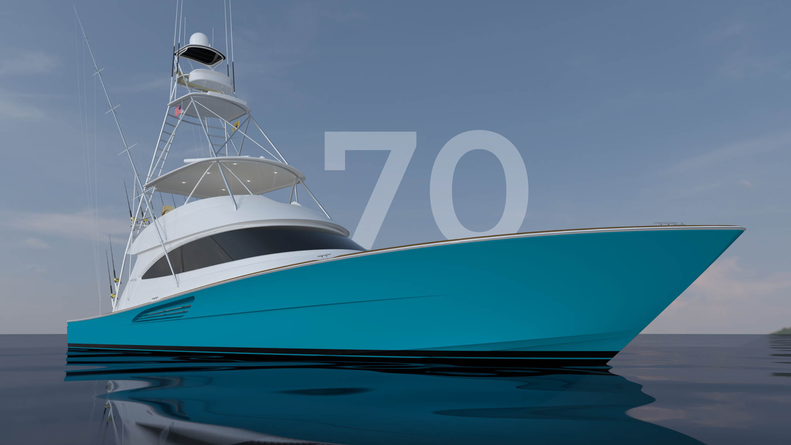 • With flow-aligned running gear, propeller pockets, and electronic power steering, the 70 is expected to reach speeds in the low 40-knot range, depending on configuration, while maintaining control and efficiency underway.