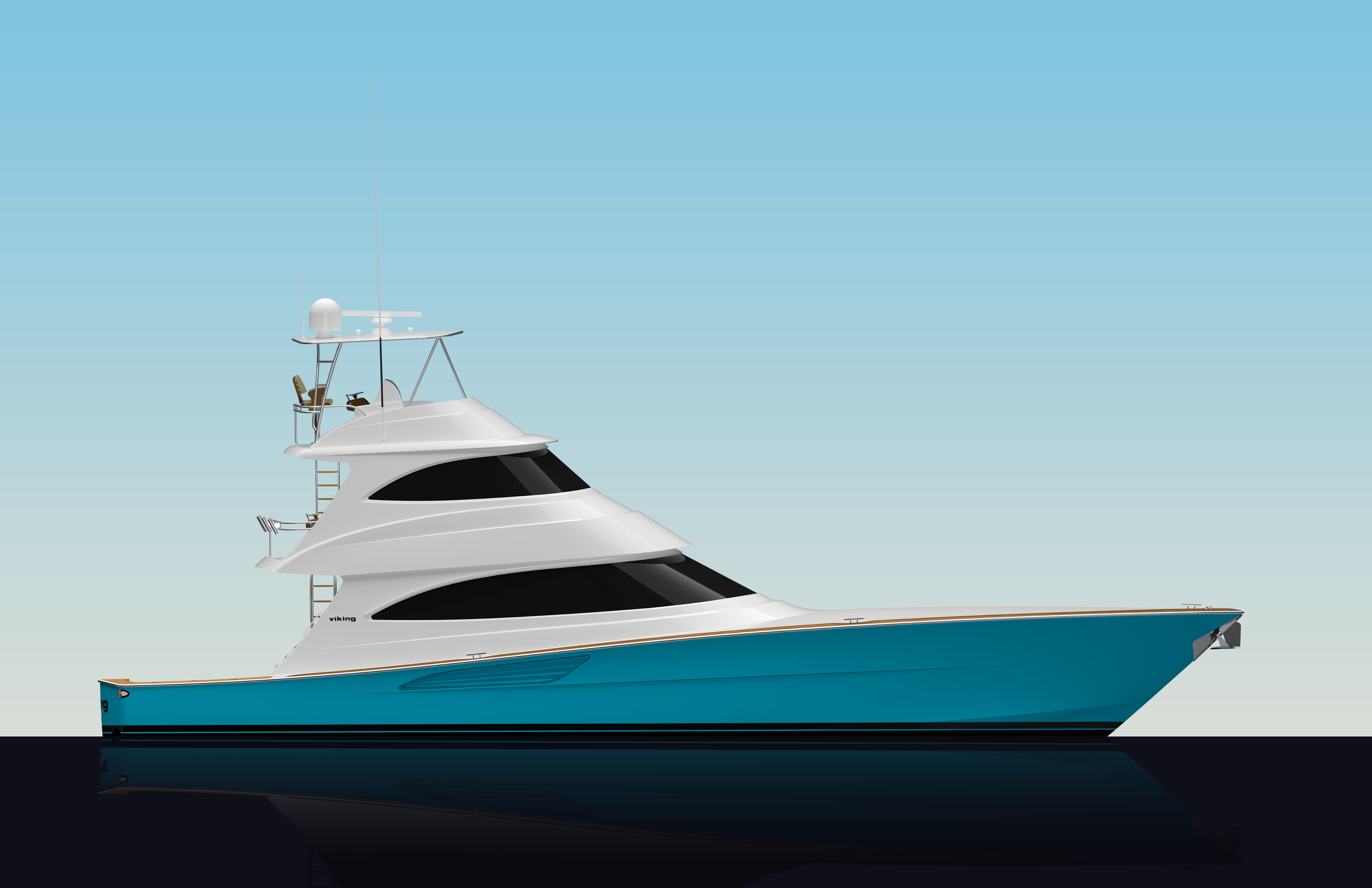 The Viking 70 Sky Bridge builds on the new generation 70 platform, combining open-air visibility at the helm with the added comfort of an enclosed bridge below. It offers the command and sightlines of a traditional bridge boat, along with the protection and additional living space found in the enclosed configuration.