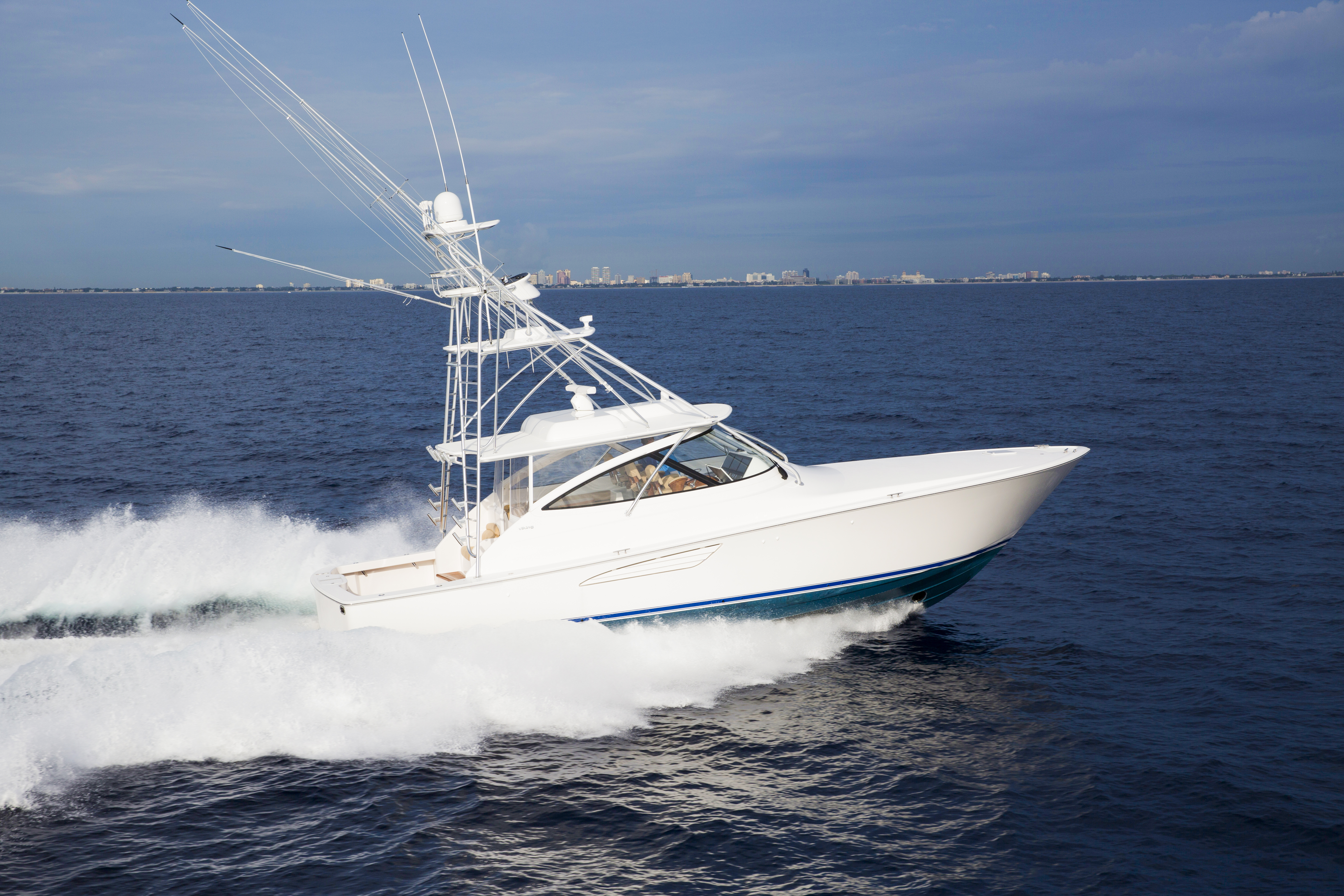 Viking Open Yachts are the ultimate combination of sporty and sleek design, boasting a sleek sheer line, raked stem, and a sharp entry. The perfect boat for all types of water activities including fishing, diving, and cruising.